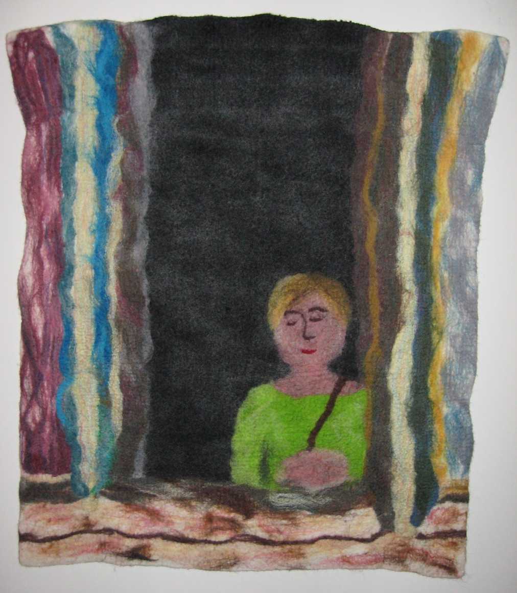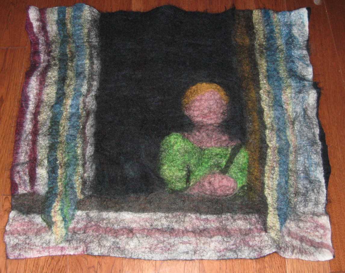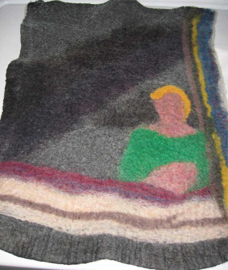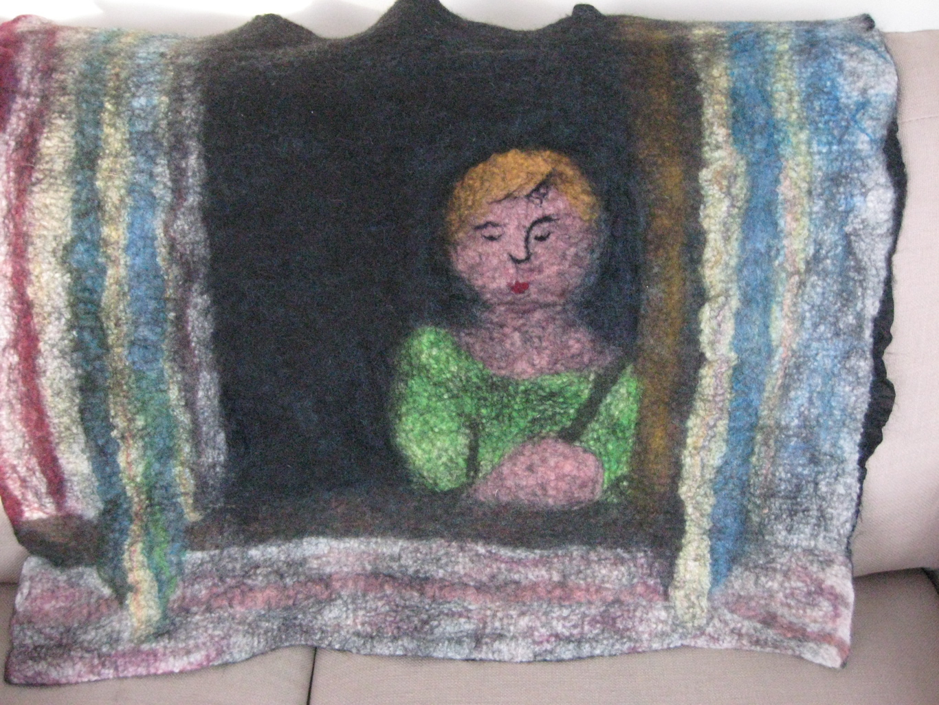 Plus I was working on a second felt wall hanging to submit with ‘Heron’ for the AAFG show in March at the Village Theater at Cherry Hill in Canton, MI.  I decided to do a self-portrait.  Now I struggle when it comes to sketching/drawing and being a ‘process’ artist/‘experiential’ learner … oh this was going to be an adventure!
