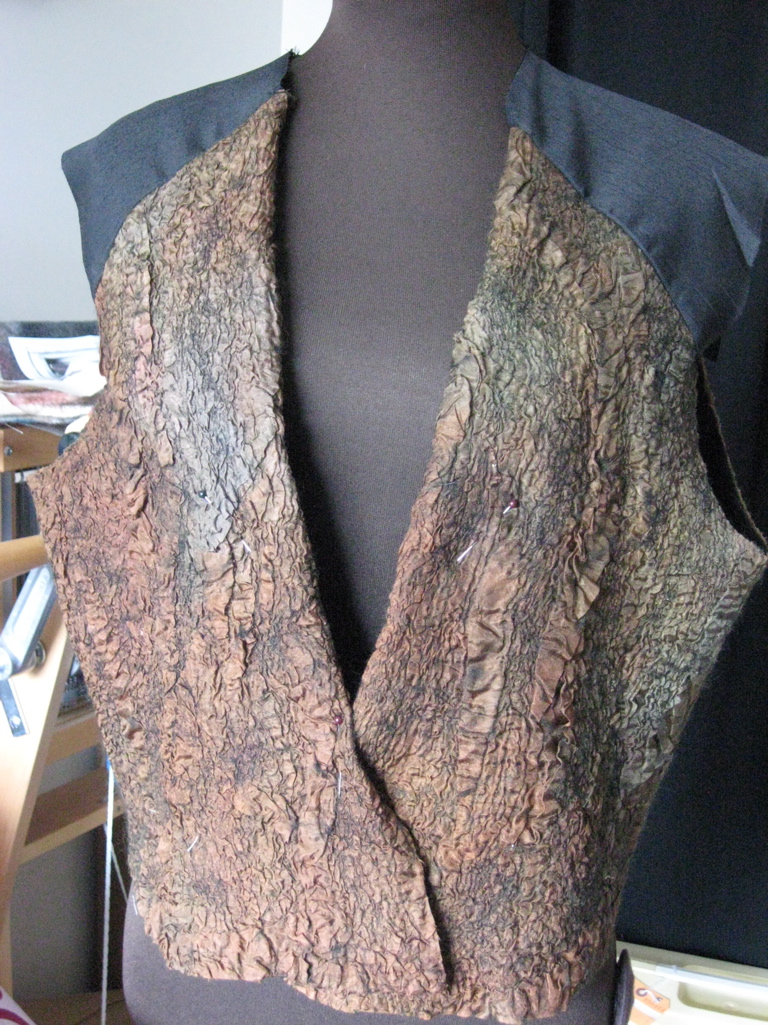 The vest has sewn seams. The shoulders panels are silk doupioni and I used silk habatai to line it.