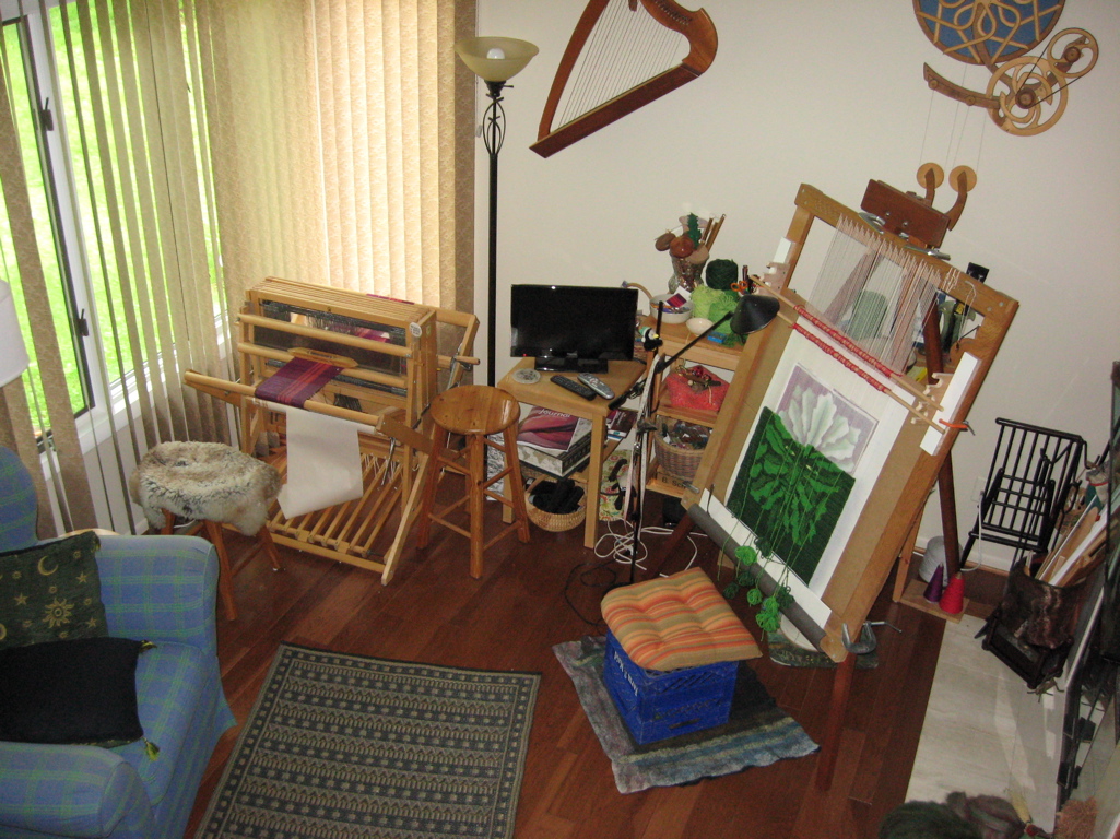 For me… my looms have always been in the living room. They’re the first thing someone sees when they walk into my house. (What can I say…. it’s got great natural light and I get the fireplace!)