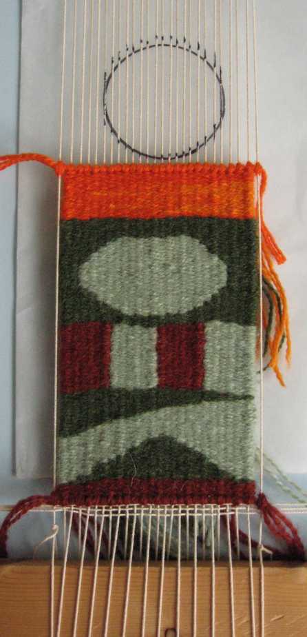 Alastair’s comment that it took him 7 yrs to perfect doing circles made me feel a lot better and really appreciate the skill necessary to create tapestries with nice round circles in them. I wove a bit more – making sure I was beating FIRMLY – and drew another circle with the plan of trying it again as the week went on.
