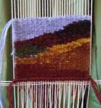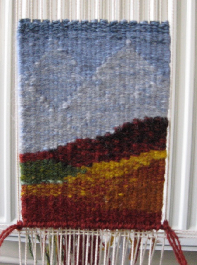 I decided to work on a landscape for my next project because I’ve struggled with getting a sense of depth in my fiber work. Using one of my photos as my guide, I selected my yarns and began weaving – making sure I was beating FIRMLY as I went.