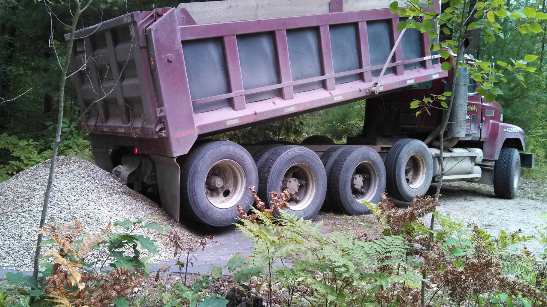 Step 1 : delivery of 3 cubic yards of small stone/pea gravel