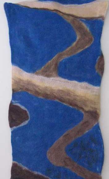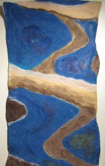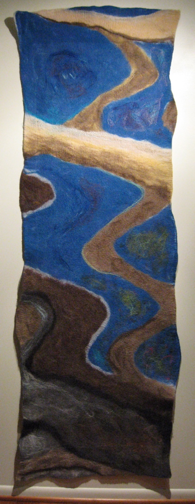 This was one of the largest felt pieces I’ve ever made and felting it was physically demanding.  I was pleased with the design – the mix of colors and line movement.  It made a statement, especially from a distance.  I believed it was good enough, so fingers crossed….. I submitted it.