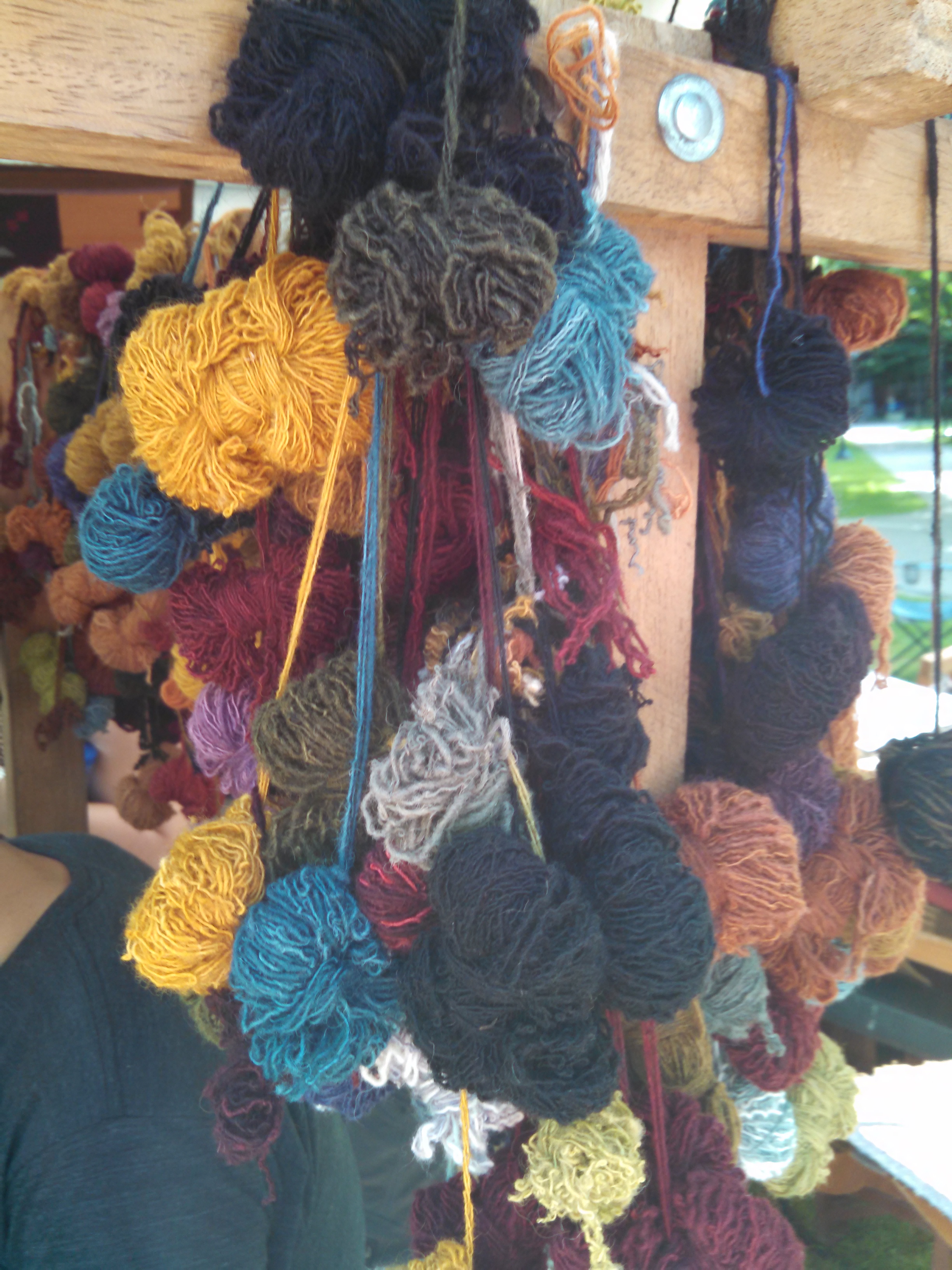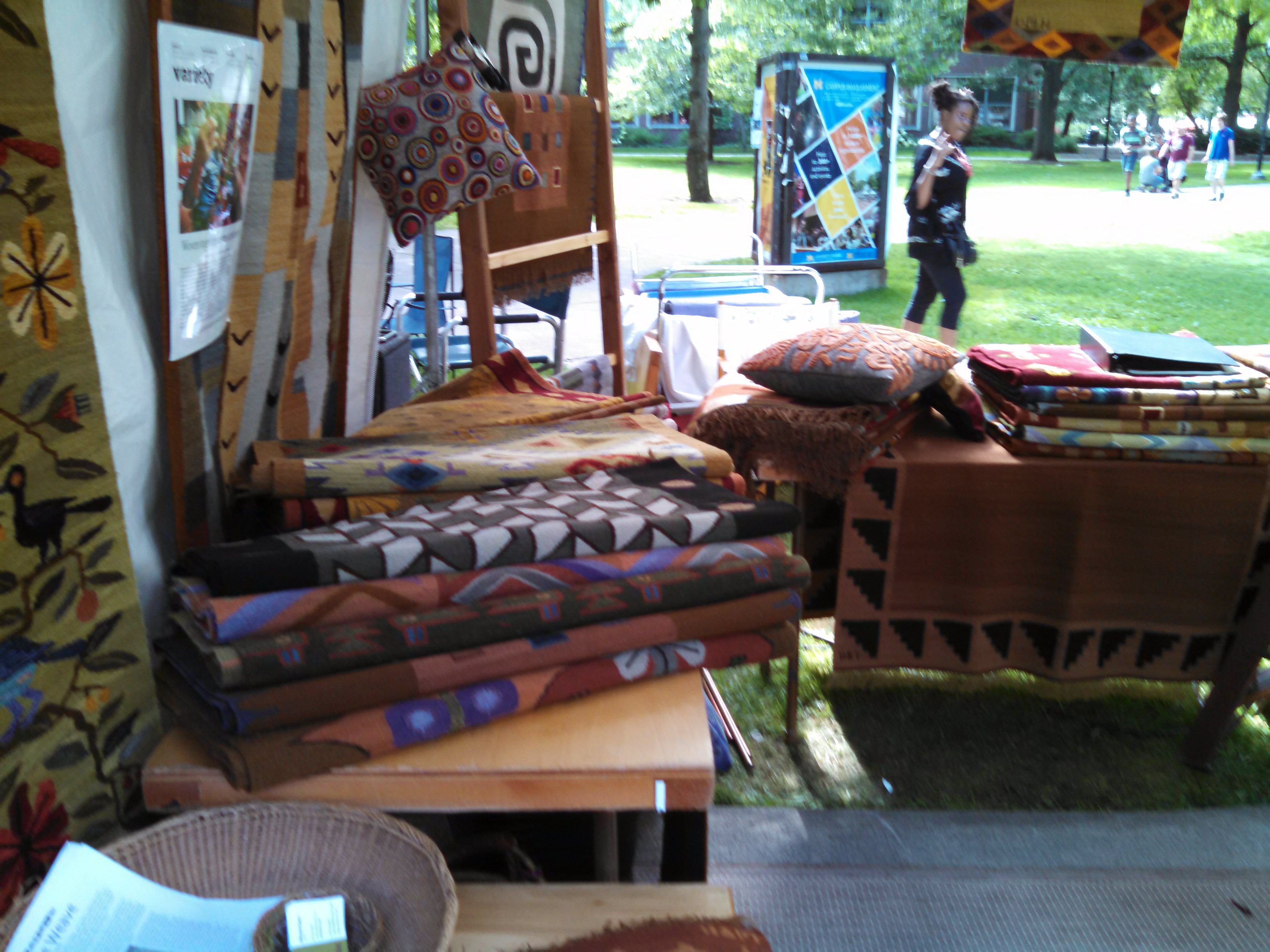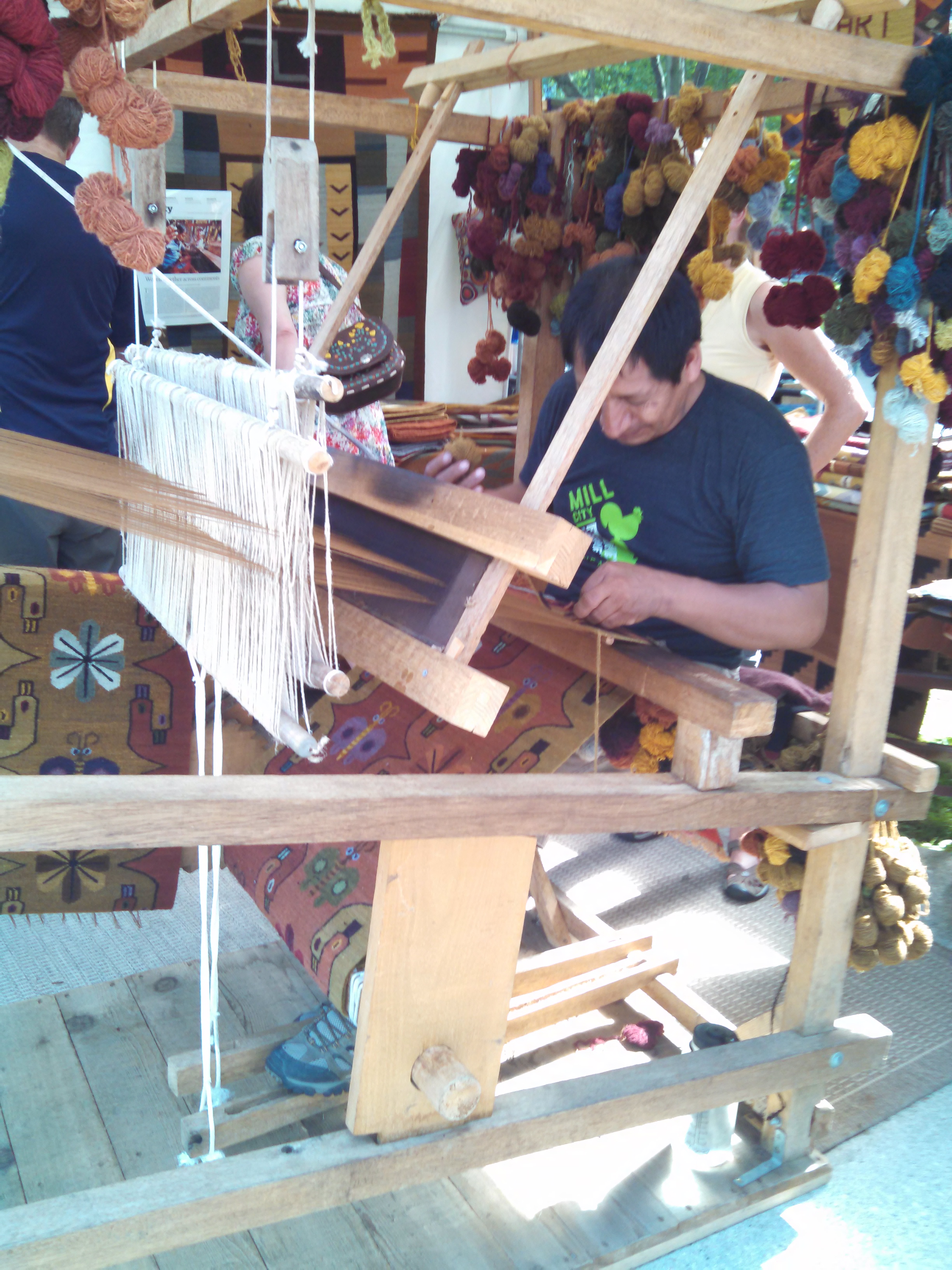 As I walked past the booths of artists on my way to work one of evening shifts, one booth in particular caught my eye – a weaver working on a large loom….