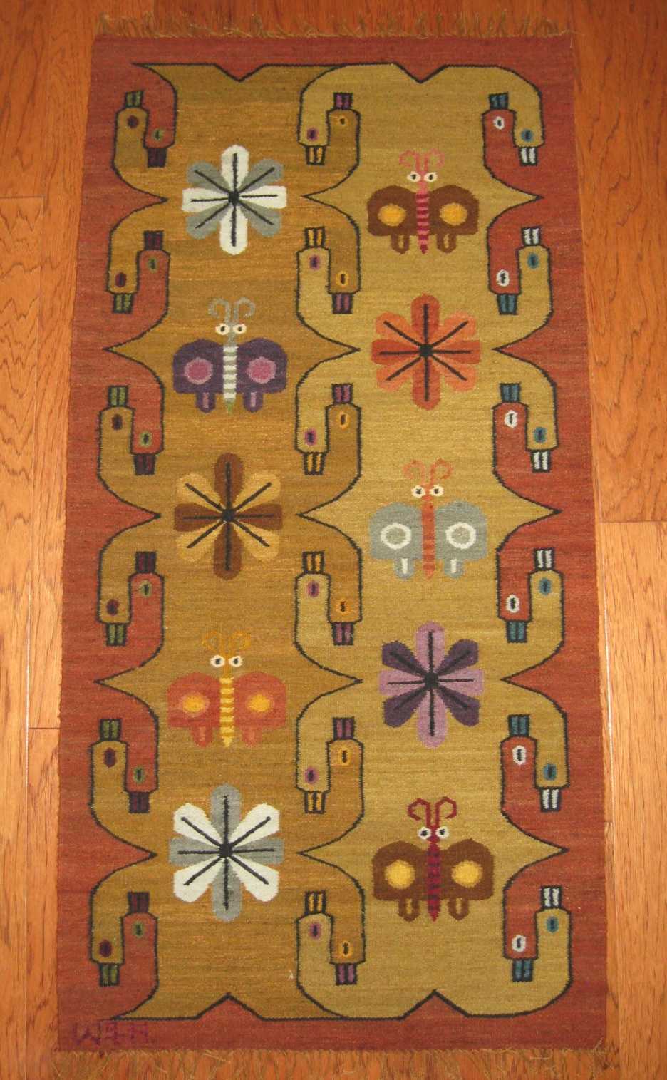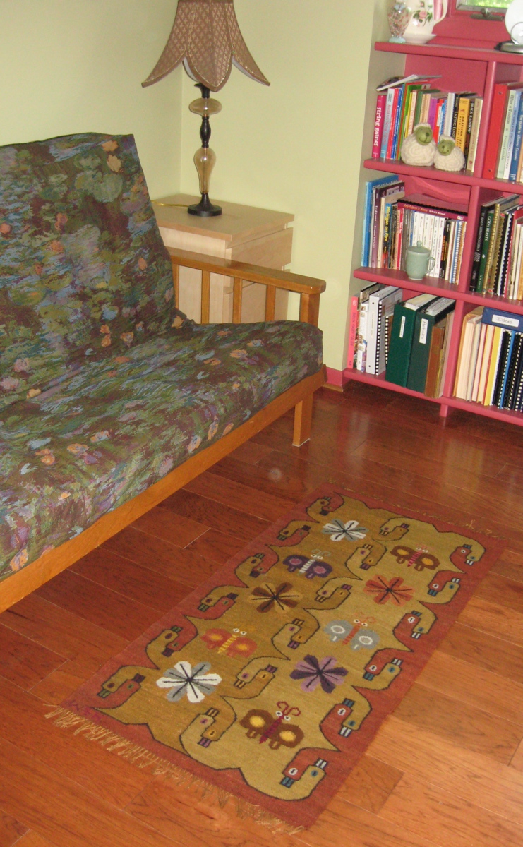I was drawn to the pattern of intertwined birds used as the border on the rug Wilbur was weaving. This image dates back to a time before the Incan Empire. I am happy to say that a smaller version of the rug has found a place in my home!
