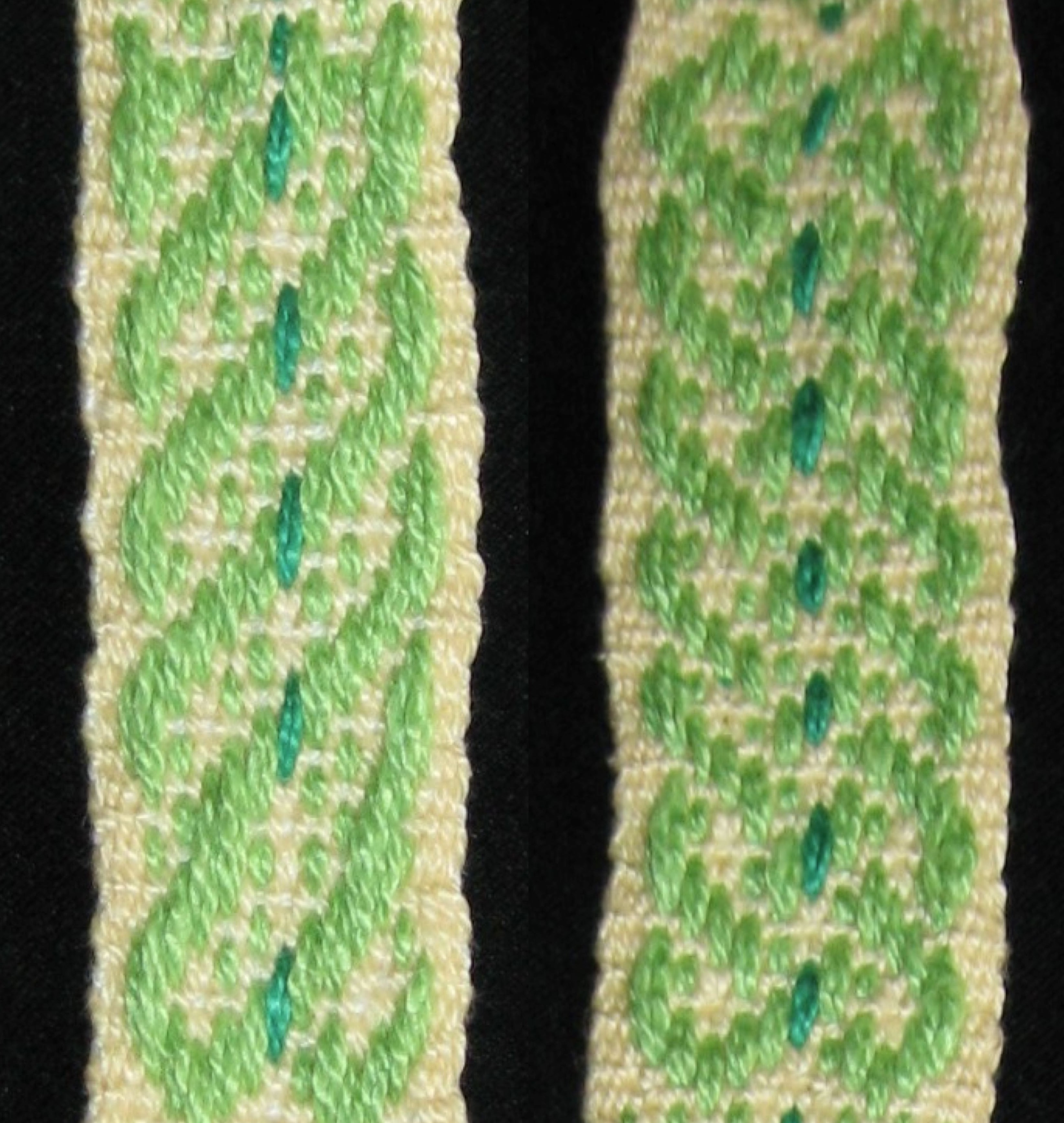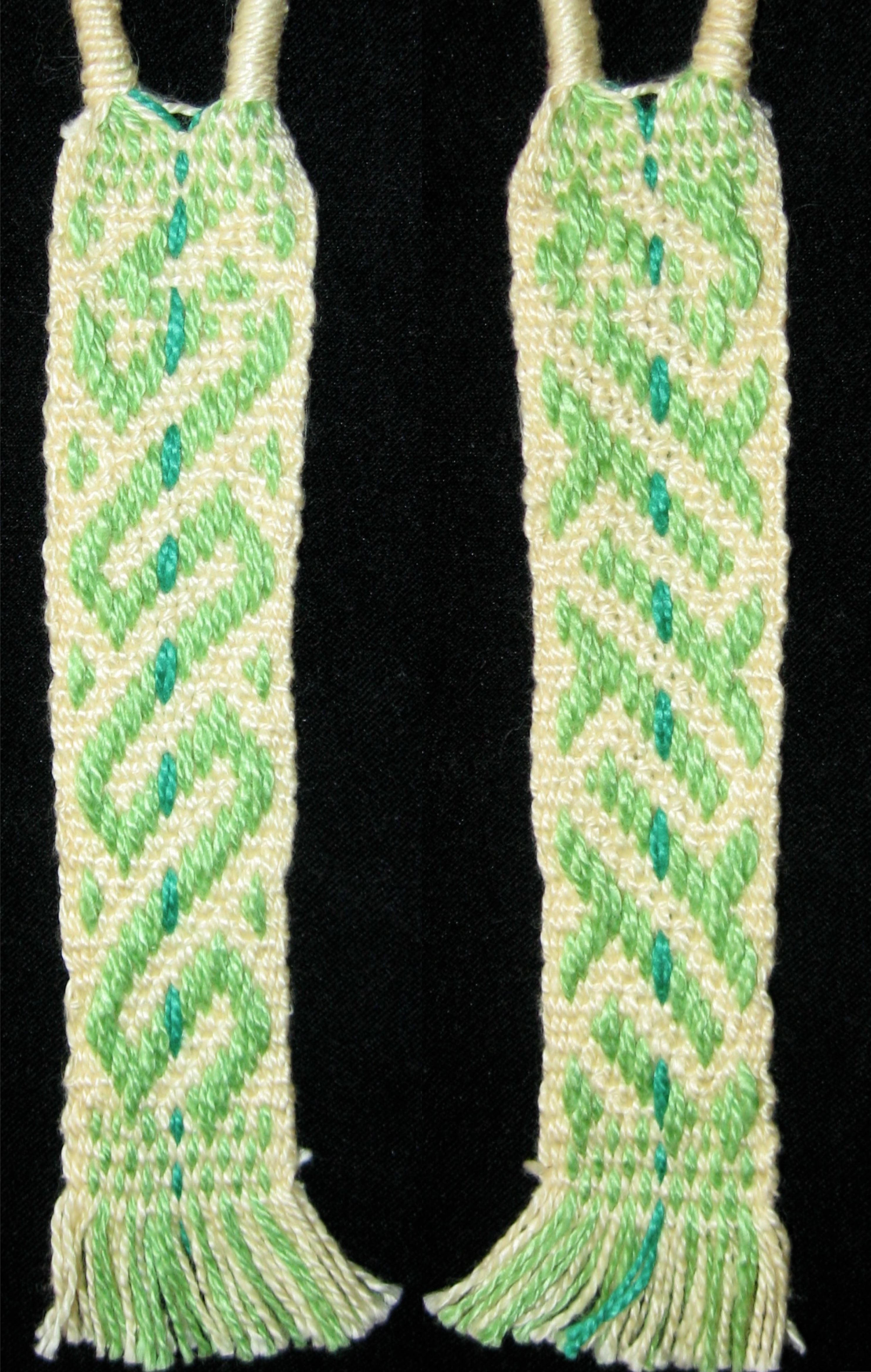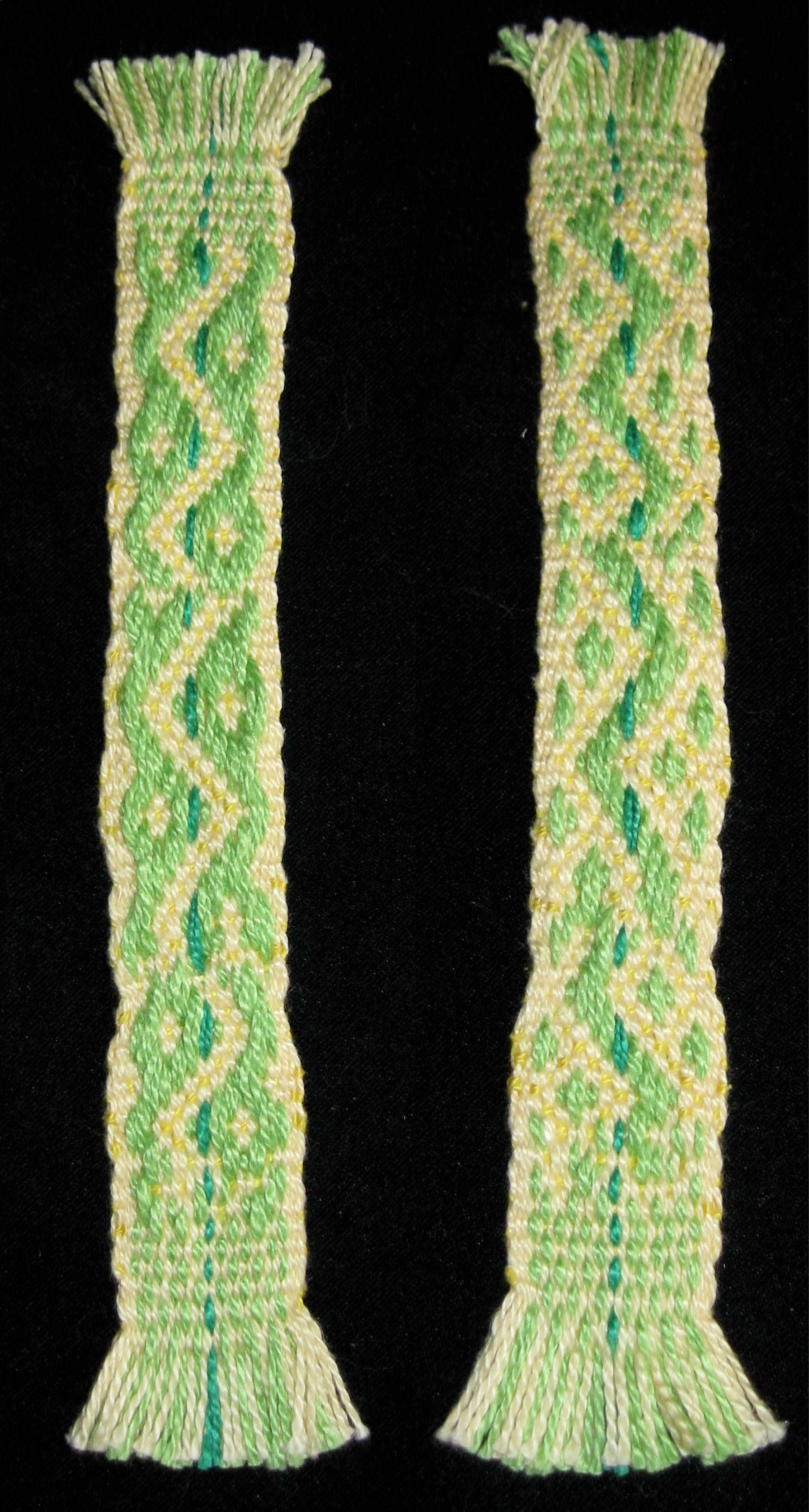 Lesson learned and more weaving.  [photos show the front and back of each band]