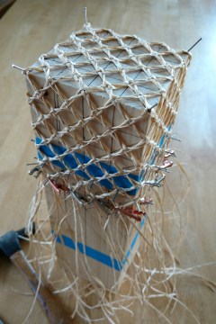 Today we tackled weaving a lace basket made with Japanese Shifu which is woven over a block. Most of the morning was spent drawing the grid on our blocks of wood.