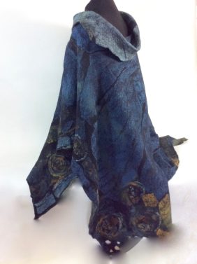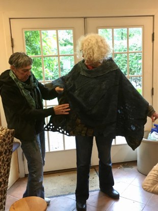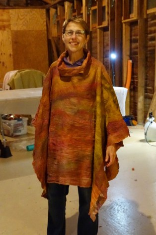 Late afternoon into evening was spent rolling and shrinking the poncho 40% to the desired size. By 9pm I was ready to try on my rather damp poncho.
