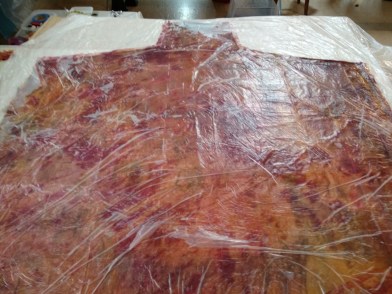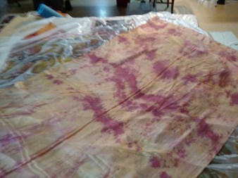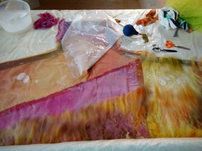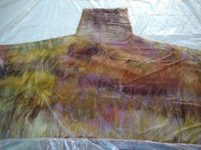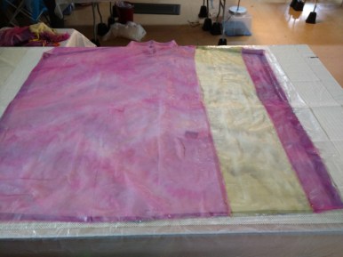 We laid out the silk fabric for the front and back of the ‘inside’ of the poncho