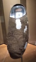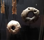 –a tour at the Jorvik Viking Centre which included additional information on the textiles and weaving artefacts in their collection – especially a sock made using a technique called Nålebinding, which predates knitting and crochet. I also saw some clay weights for a warp weighted loom like the ones Ben Rosenfield made for me. [see July 2019 blog The Gift of Friendship ]