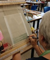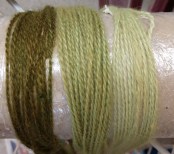 I played with some other combinations of colors as others continued to dye yarns or started weaving as Dot held short instruction sessions throughout the day.