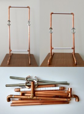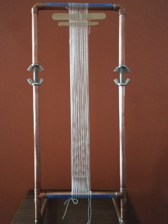 This means I get to make a new toy!!!! Plans are included for making a tabletop pipe loom out of galvanized, copper or PVC pipe. I decided to make mine from 1/2″ copper pipe (for about $20) that can be taken apart for storage. I cut 2 different lengths for the side pipes so I can have a shorter or taller loom depending on my project. This was the same principle as my large pipe loom but much easier to make!