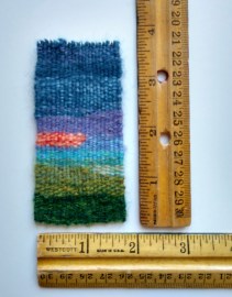 Rebecca Mezoff has developed and produced a series of online tapestry classes. I took an in-person workshop with her several years ago through the Michigan League of Handweavers summer workshops. Her clear instructions/encouraging teaching style worked well with my learning style. I’ve watched several excerpts of her online classes that she has posted on her blog. Her camera work is some of the best I’ve seen and her instructions are clear and easy to follow. In her blog and newsletter she mentioned an interesting technique – fringeless tapestry using a warping technique that produces selvedges on all four sides!