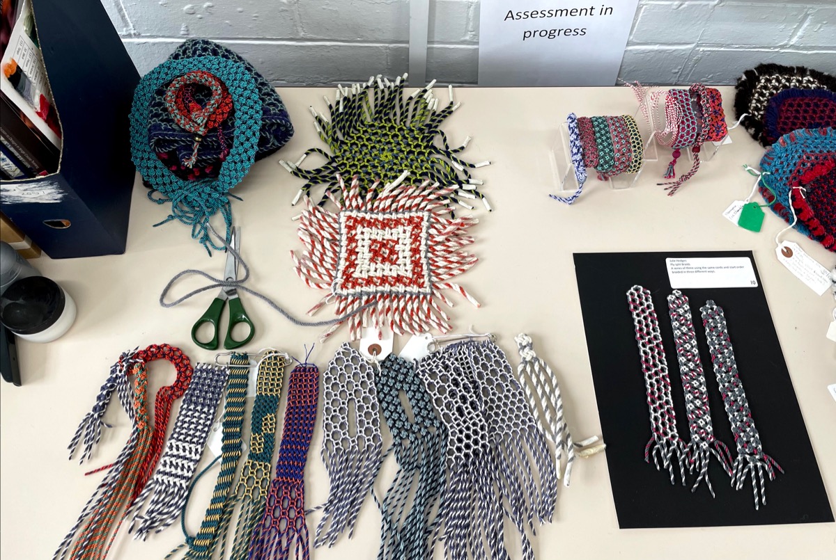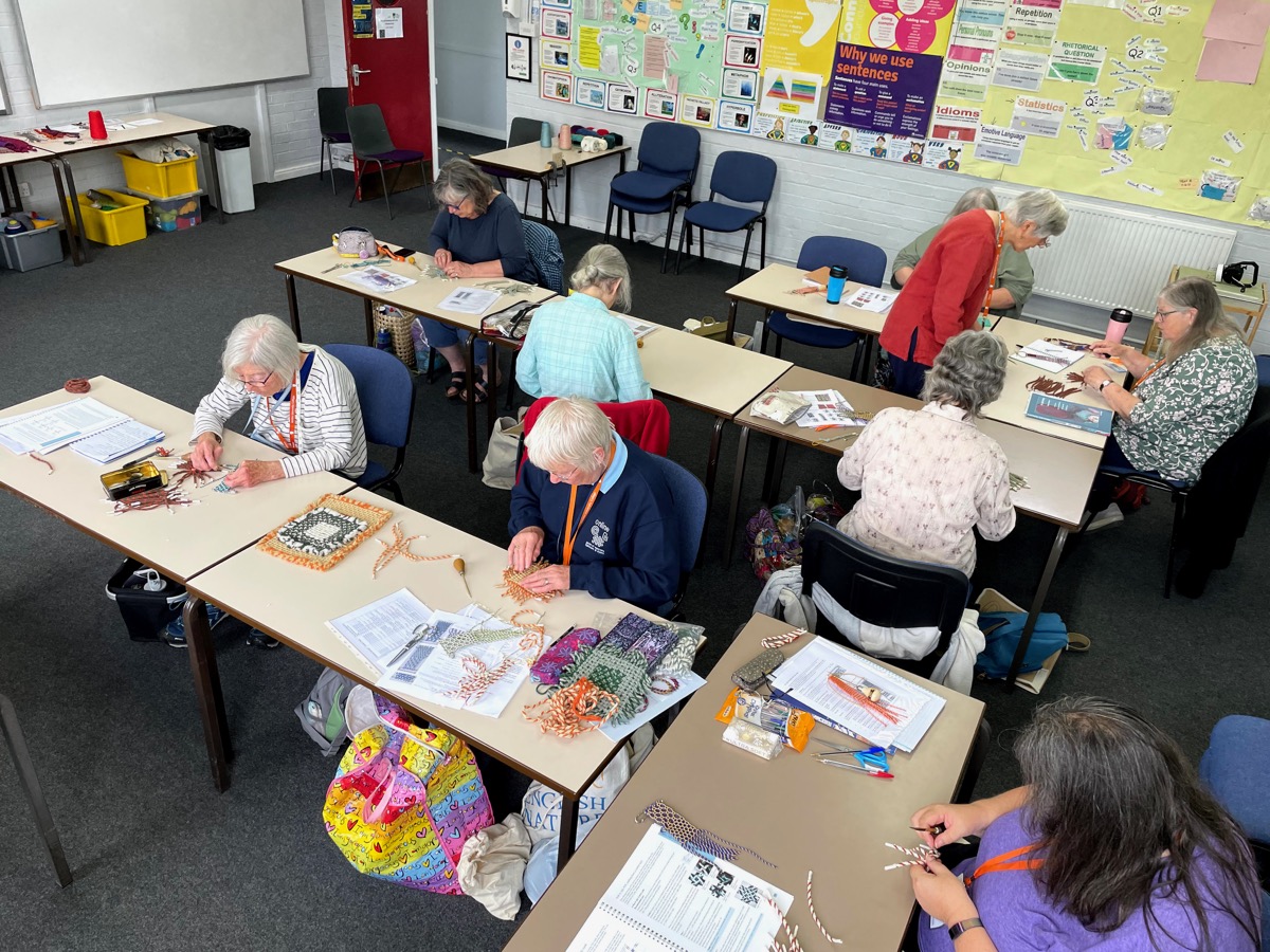 I’ve been attending the biennial summer school organized by Association of Guilds of Weavers, Spinners and Dyers in the UK since 1999. This inspiring week of study follows a long tradition with courses running from Monday morning until Saturday morning. Ancillary activities include a Silent Auction, Raffle, the Trade Fair (Friday/Saturday), Fashion Show, Evening Lectures, the Tutors’ Exhibition, a Graduate Exhibition and the Certificate of Achievement Exhibition. The week includes local visit options on the Wednesday (free) afternoon, and concludes with the celebratory Gala Dinner. Over the years I’ve had amazing experiences meeting fiber artists from the UK, Europe and beyond, learning from individuals who are at the top of their art form, seen growth in my knowledge and skill within the vast and diverse field of ‘Fiber Arts’, and have been able to work with natural materials that are not always easily available here in the USA.