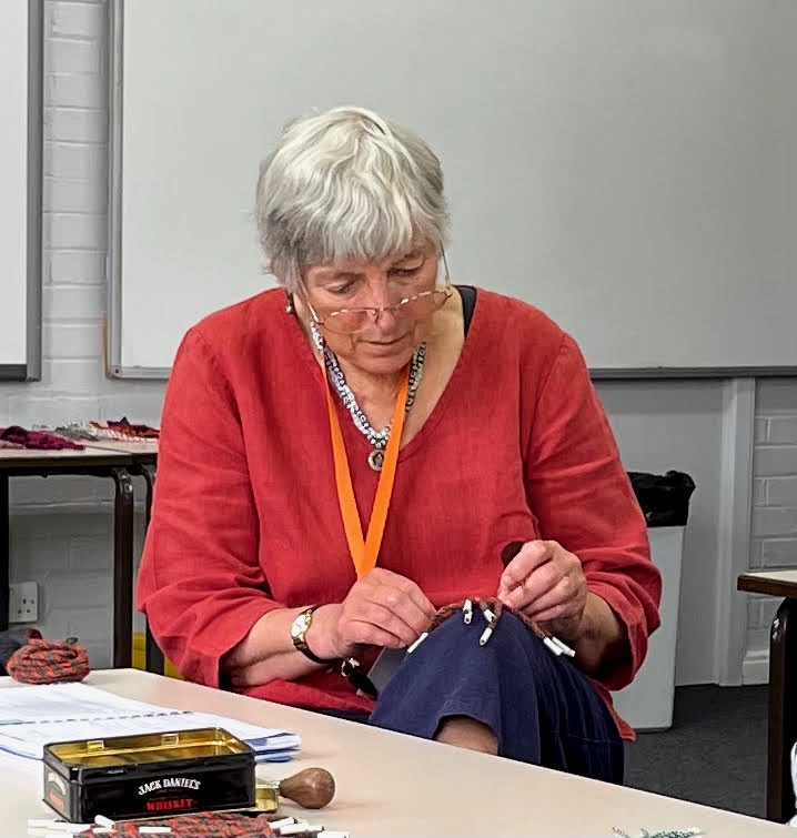 Holding my breath and crossing my fingers that the upcoming availability of Covid vaccines would make August travel possible, I submitted my application for the January course allocation and got my first choice – Ply-Split Braiding using 3 ply Twisted Cords with Julie Hedges. [“Ply-split braiding is an ancient art that is practiced for making elaborate camel girths and other animal regalia of hand-spun goat hair, wool or sometimes cotton in northwestern India using a technique where one twisted cord passes through another twisted cord or cords, splitting the plies of the latter cords.“] The only thing I had ever done that is at all similar was years ago when I taught sailing and we needed to splice lines/ropes for specific use. This would be a new fiber technique for me!