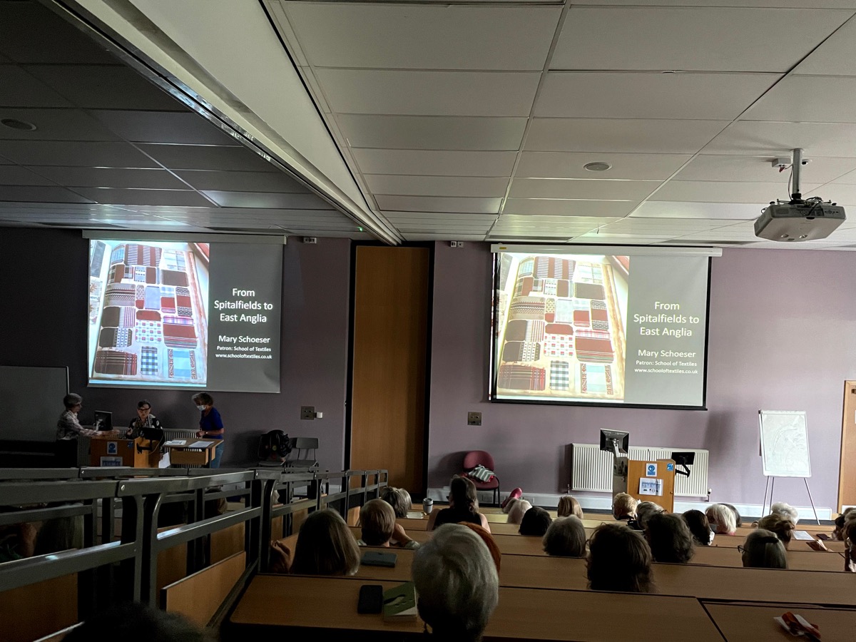 The evening program ‘From Spitalfields to East Anglia’ was a talk by Mary Schoeser, an Honoary Senior Reseach Fellow at the V&A Museum, studying 19th century Spitalfield’s silks.