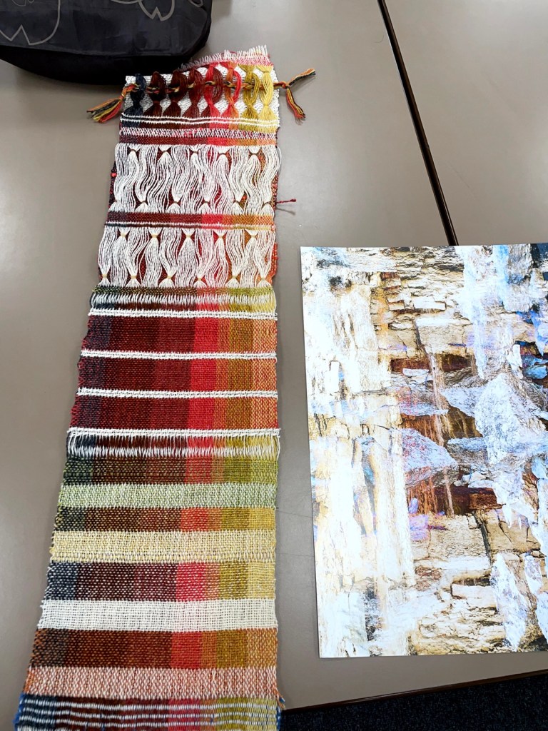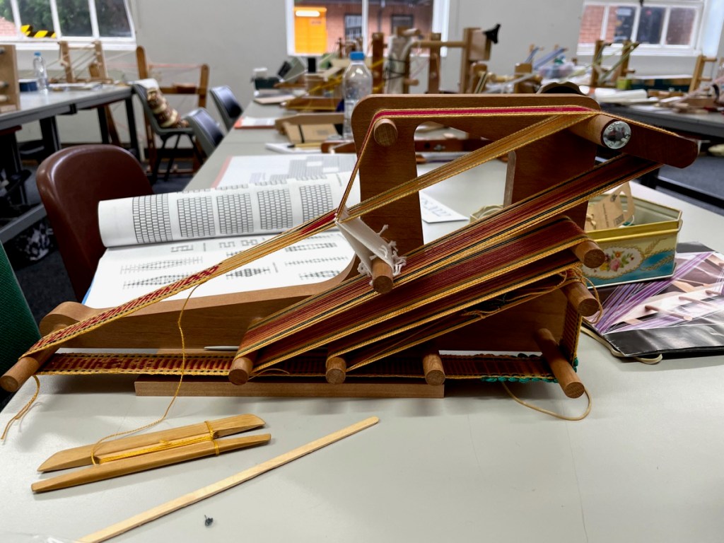 In the evening it was back to the classroom to twisted cords for Saturday morning and to bring home. One of them was quite interesting as the twist was not consistent due to uneven tension on the cord as I was plying! I made a sample card for the the yarns I used during the week to reference and bought a Kipu cord winder so I can continue experimenting with Ply Split Braiding at home.