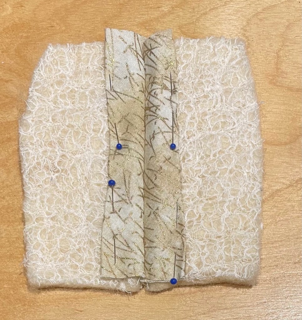 Stitch the folded bias tape to the right side of the fabric – lining up the cut edges.