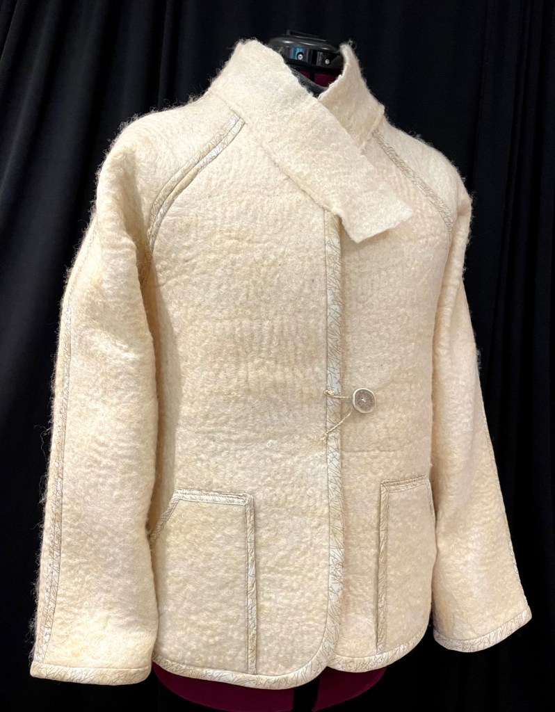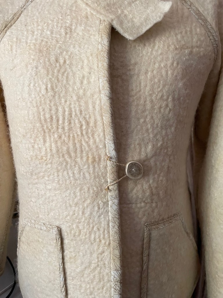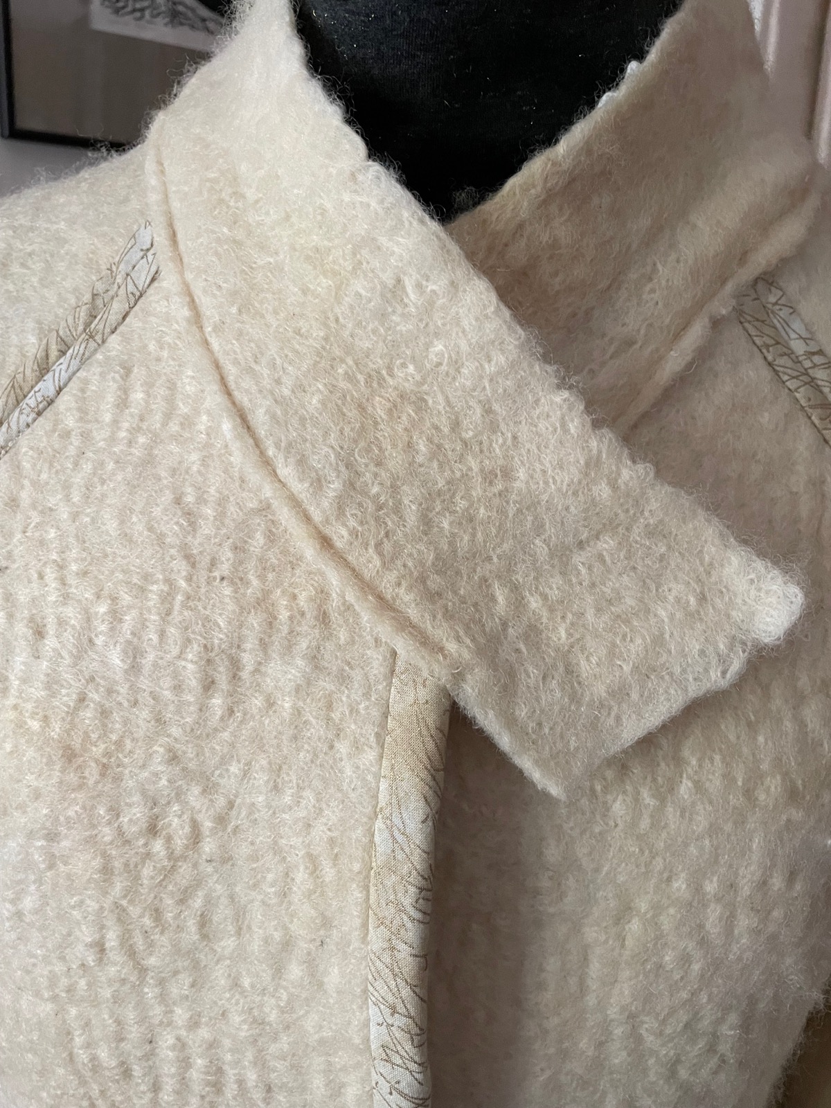 I was pleased with the texture and color blending of the top surface wool and the cheese cloth underside was interesting. The felt is definitely heavier weight so looks like I’m going to make a winter jacket from the yardage.