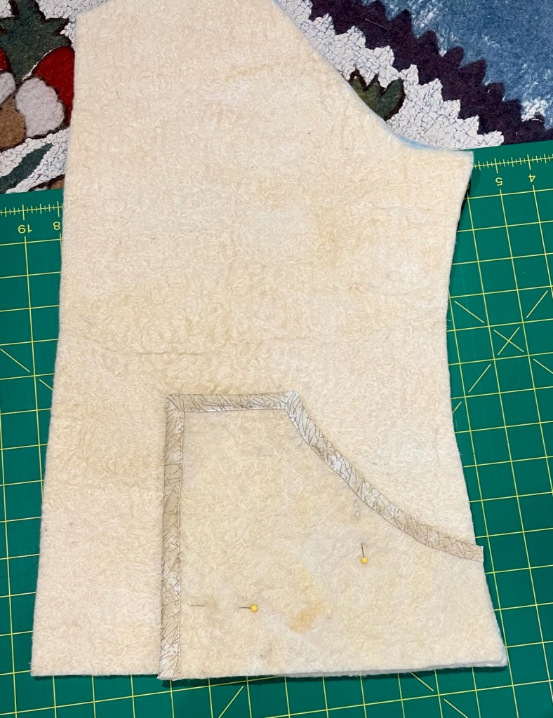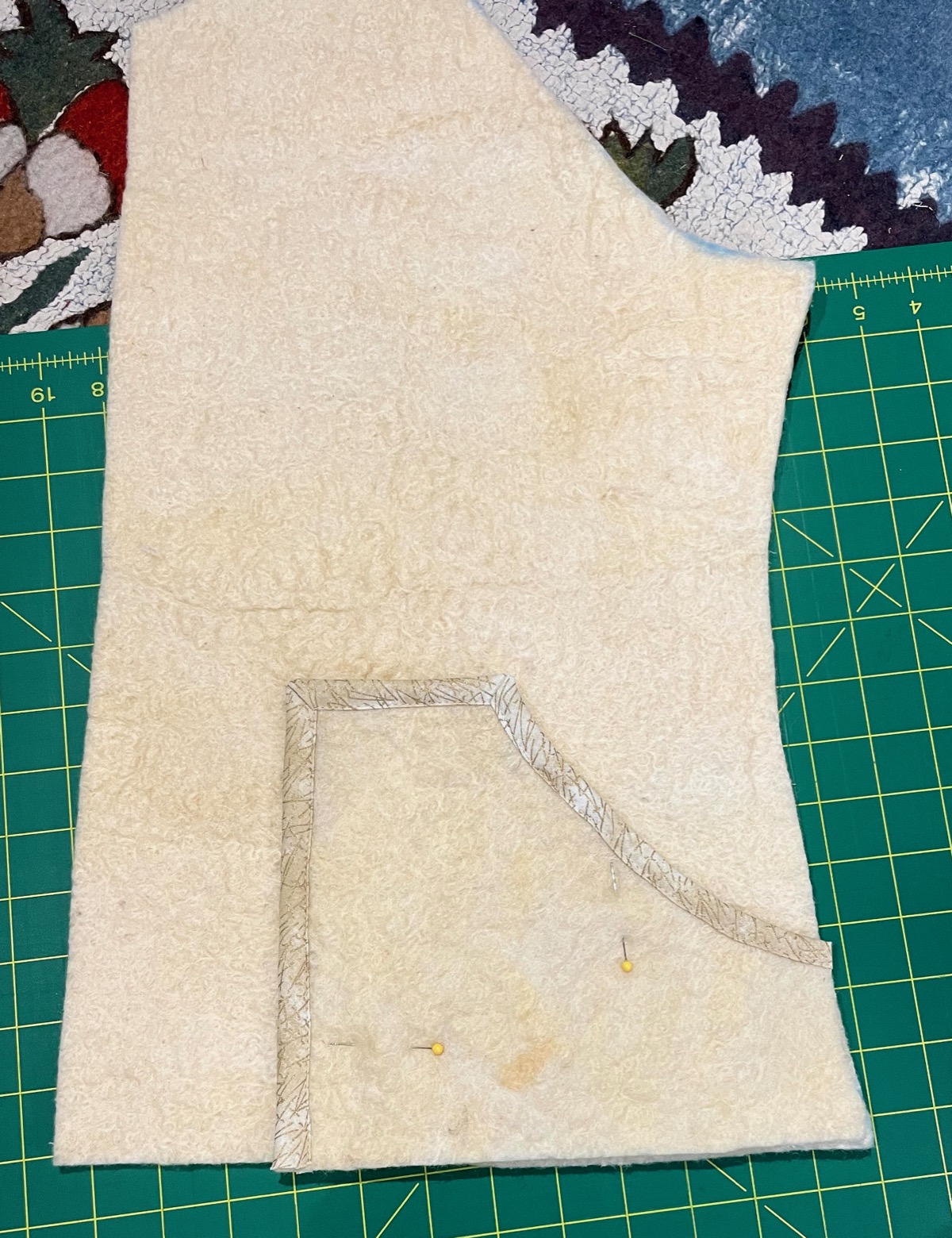 Using the bias tape as trim finishing for all the exposed edges I added patch pockets to the front and stitch everything together. I used a piece of the lightest weight felt for the collar.