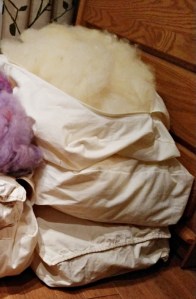 Now that the Romney fleece was washed, picked, and carded the next step was “What to do with it?” Looking at the 3 bags I decided to make felt yardage to be sewn into a garment.