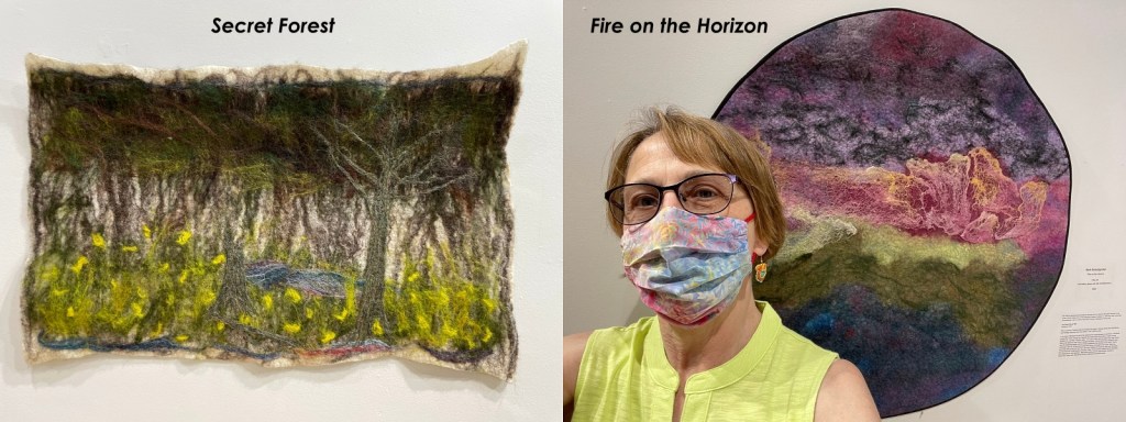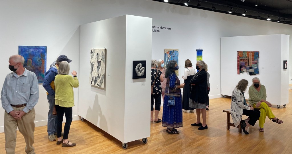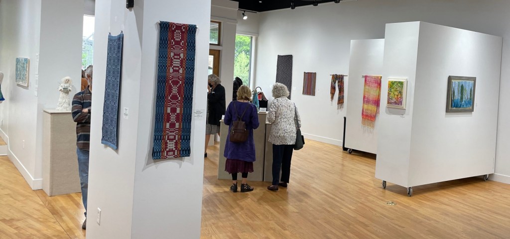 The final event this month was the artist reception for the Michigan League of Handweavers 2022 Biennial Fiber Exhibit at the LowellArts Gallery, Lowell Michigan on May 26th. I had 2 pieces accepted into the show Secret Forest and Fire on the Horizon. Here are just a few of the amazing entries.
