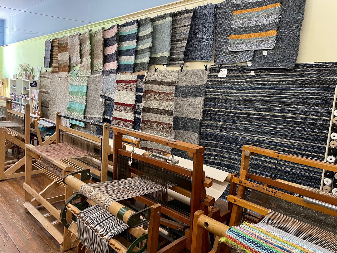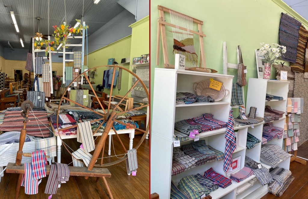 The shop is filled with the looms that are used to weave all the items right there in the store.
