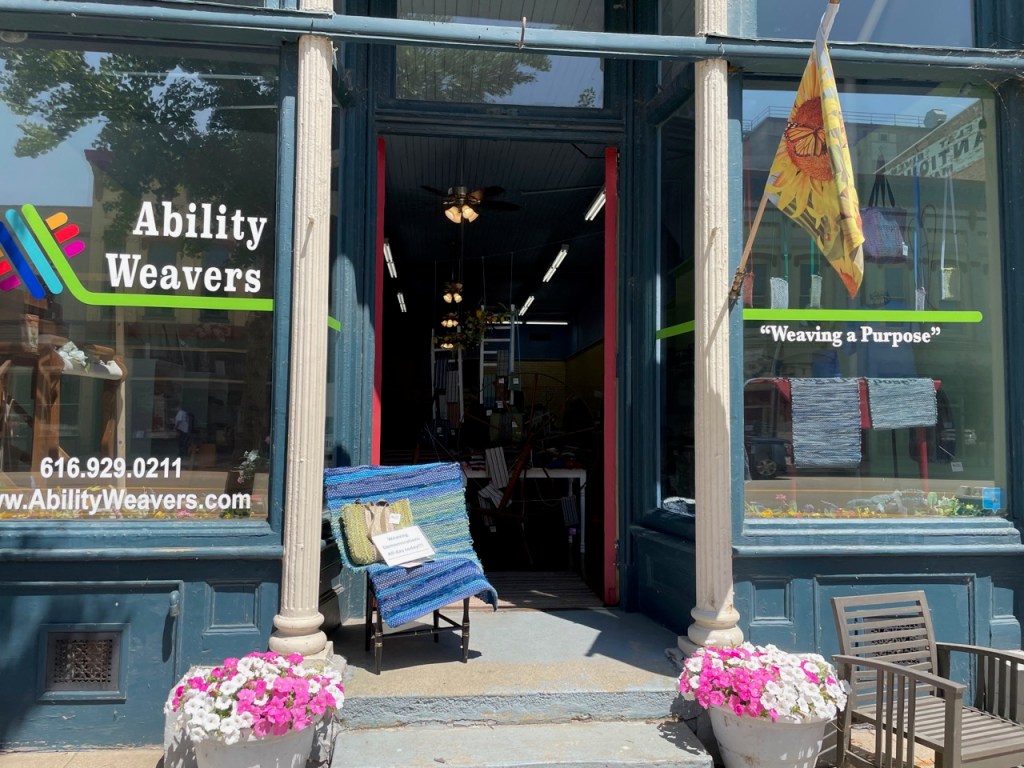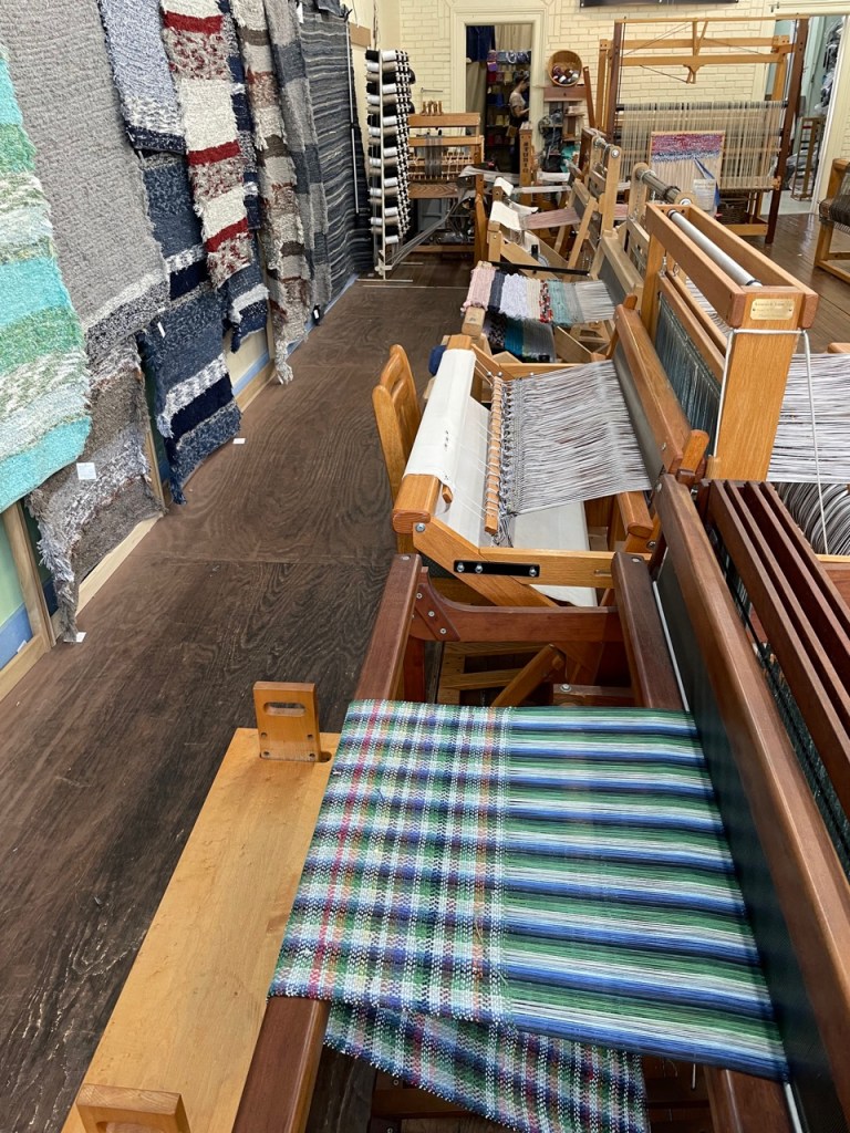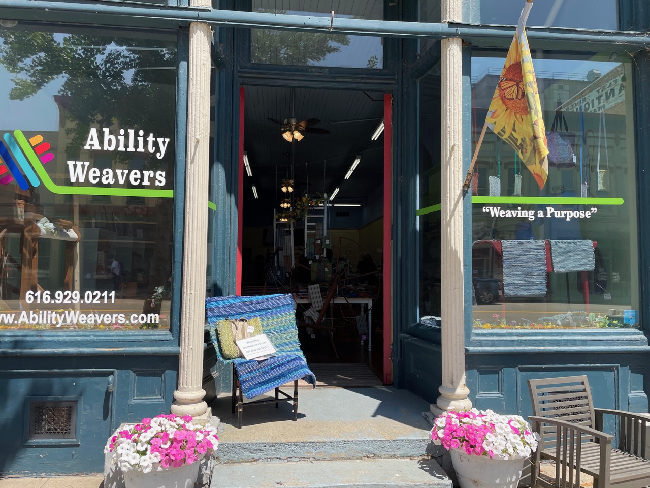 When the Michigan League of Handweavers 2022 Biennial Fiber Exhibit at the LowellArts Gallery [see May 2022 blog] came to an end I volunteered to help with the take down. Once we finished packing things up I wandered down the street and discovered a wonderful shop – Ability Weavers.