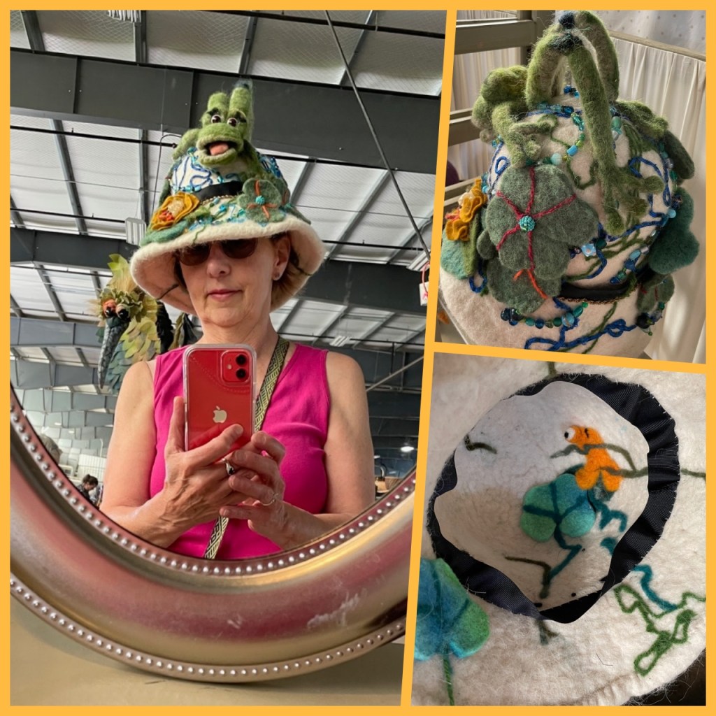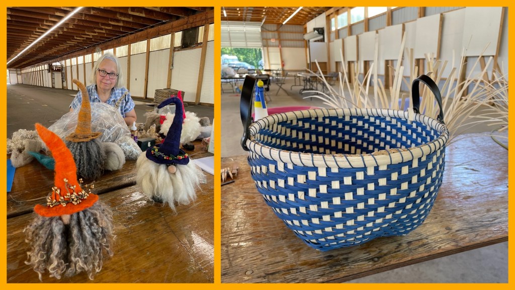 August brought one last round of workshops for me at the Michigan Fiber Festival in Allegan, Michigan. I’m rather sporadic in my attendance [see blogs August 2016 City Mouse…Country Mouse pt2 and August 2018 Big Looms…Little Looms…and a bit of color] but each time I am able to be there it’s been fabulous and seeing once again the giant rooster at the county fairgrounds gate always makes me smile!