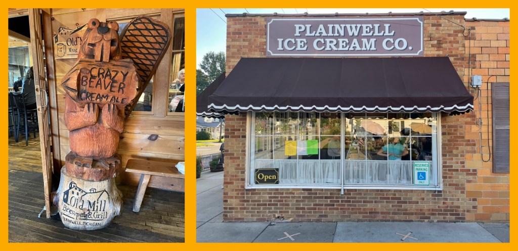 In previous years I’ve camped at the fairground. This year I stayed just down the road in the town of Plainwell and had a chance to checkout some of the local eating establishments in town. Having just finished several summer presentations of my program ‘When Beaver Was King’ (about beavers and their impact on Michigan’s past and present), it was fitting I should partake in a Crazy Beaver Cream Ale with a meal at the Old Mill Brewpub & Grill (built in 1869, the four story building was once the largest buckwheat flour mill in the country and is listed on the National Registry of Historic Places) and of course I HAD to stop at the Plainwell Ice Cream Company for something cold and delicious at the end each day!