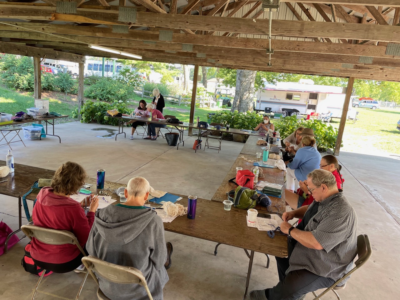 This year I signed up for Naalbinding Mittens with Heidi Bukoski, Felted Vessel: Sculpting with Nicole Gillies, and Appalachian Hearth Broom (Besom) Making with Robin Goatey. Two of the three workshops were in the open air pavilion which was nice as the weather was fabulous.