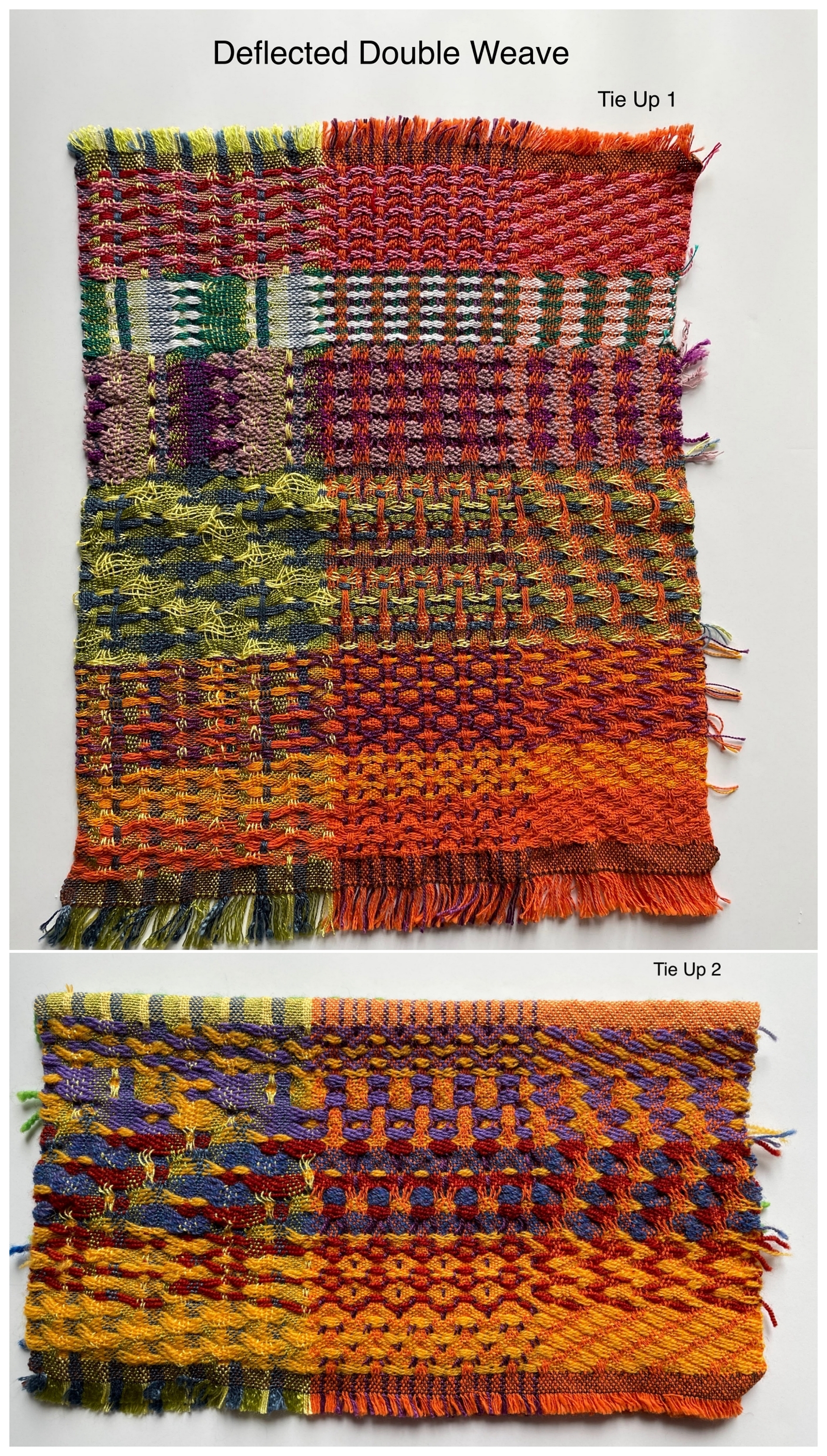 Deflected Double Weave – a two layered fabric in plain weave alternated with either warp or weft floats