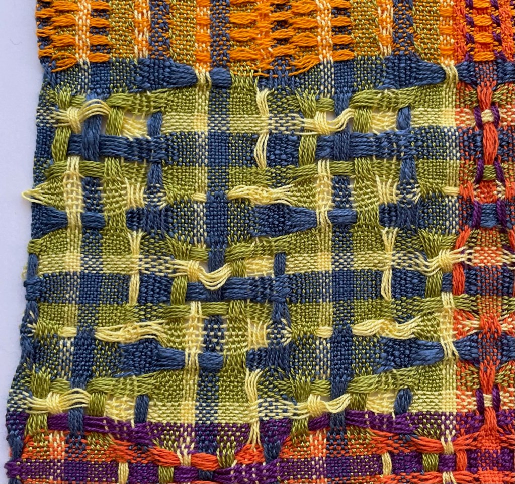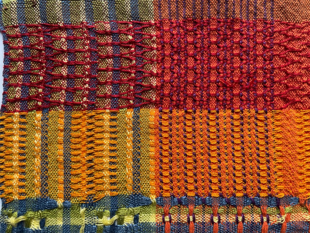 Monk’s Belt and Overshot – supplementary weft pattern using single or combined blocks on plain weave base fabric