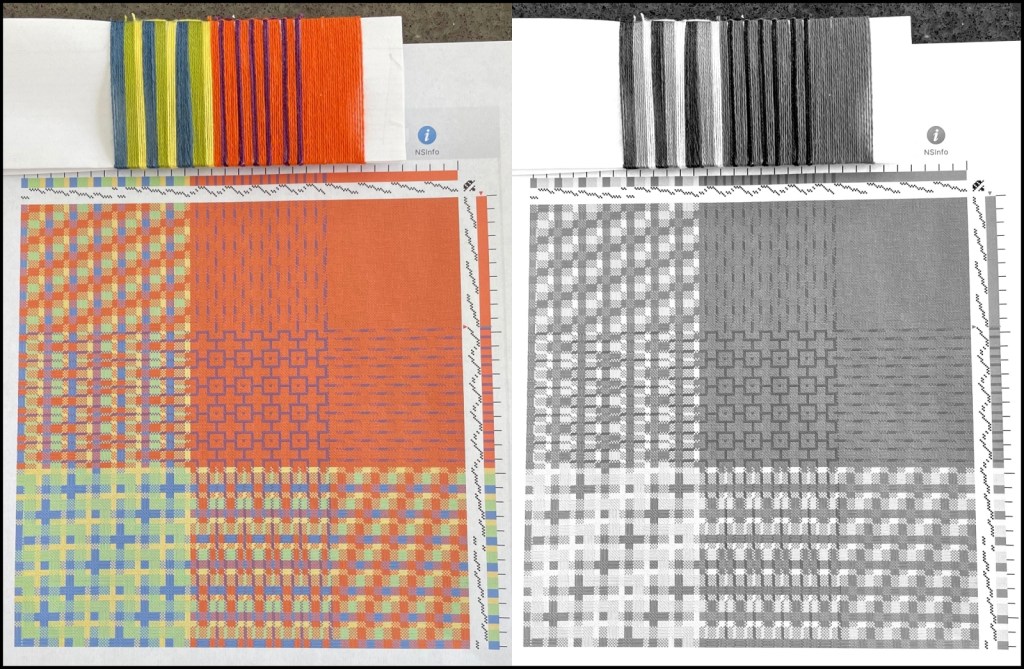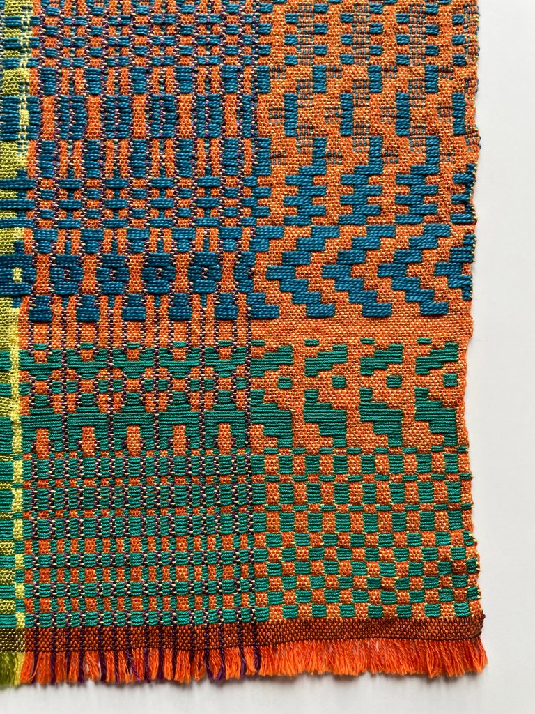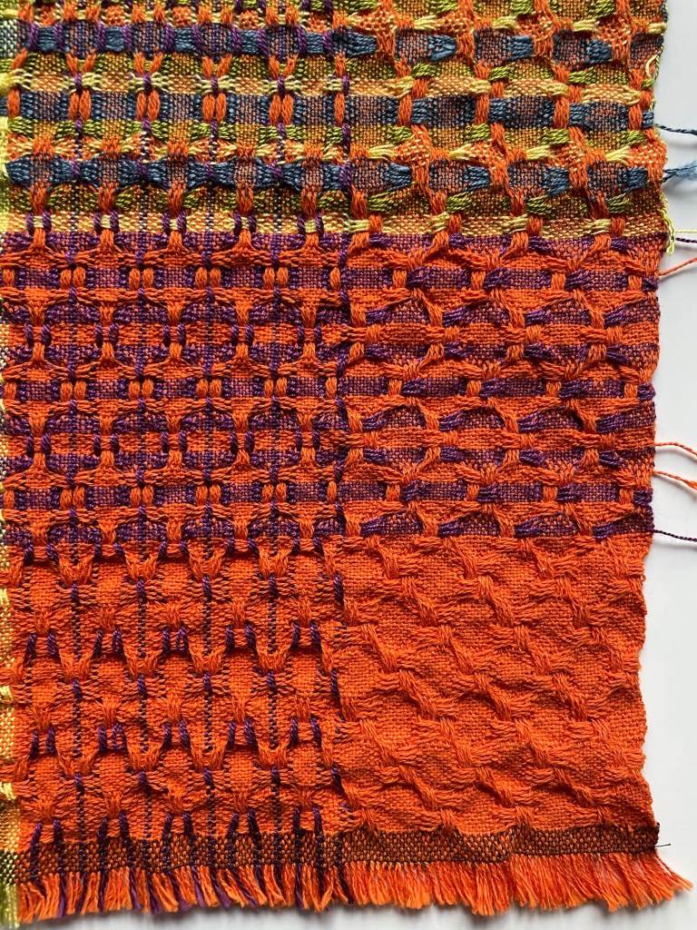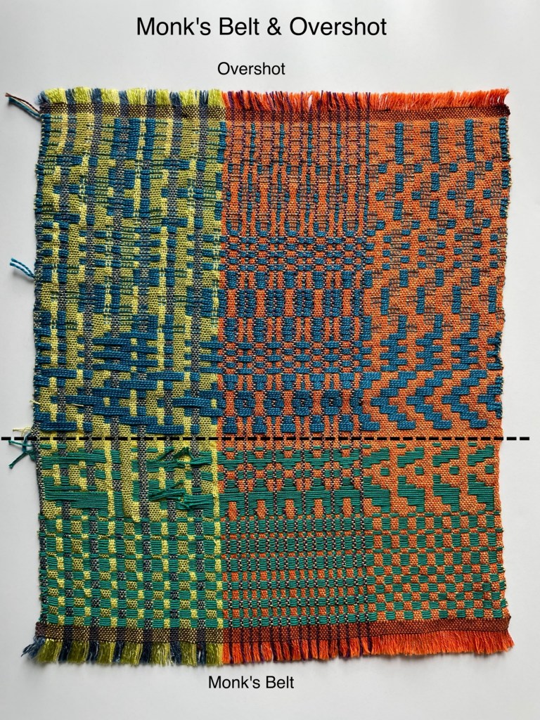 The geometric shapes in Monk’s Belt and Overshot creates a very different look and feel to the fabric.