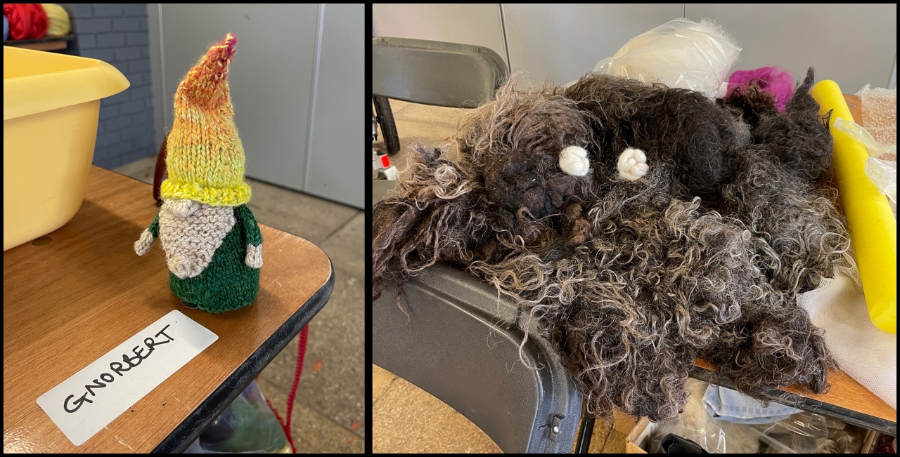 We also had the appearance of the first of our wee visitors: Gnobert the Gnome and Wally – a very matted fleece that certainly did not come through the washing process successfully.