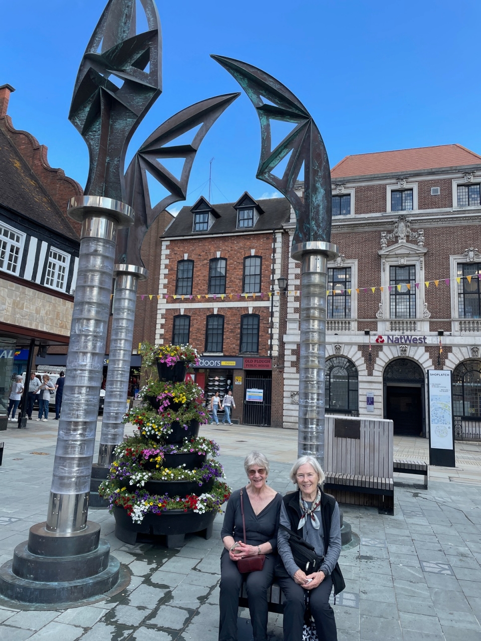 Another day trip was to Coventry to visit the memorial of the ruined Cathedral Church of St. Michael. After the AGWSD Summer School in 2019, Helen created a felt wall hanging depicting the scorched structure with a field of poppies in the forefront as a way to honor those who died in that attack.