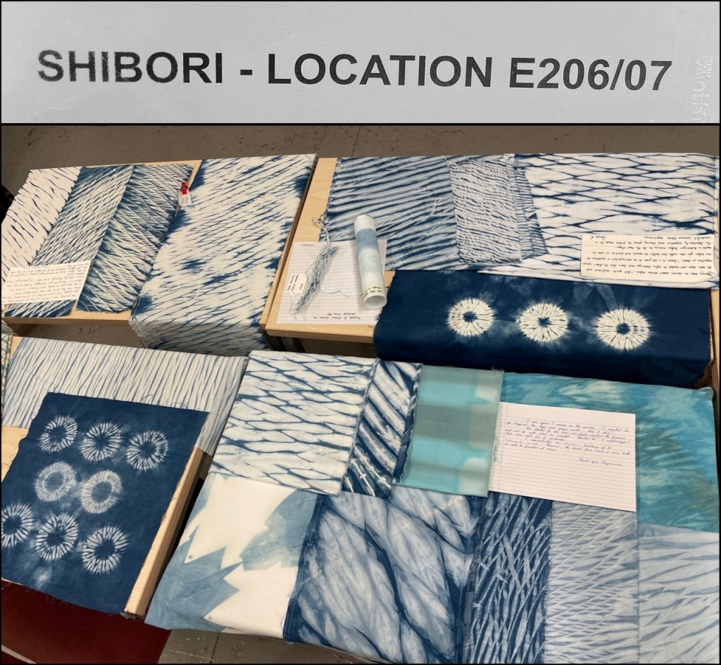 Day 4 – This is a half day in the workroom. The morning was spent making 16 tiles by cutting and embellishing a larger piece.