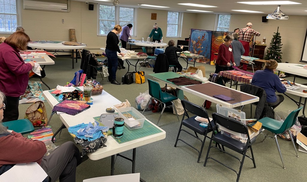The Ann Arbor Fiberarts Guild kicked off the new year with a workshop by Thom Atkins called ‘Scrappy Improvisations’. Thom’s an amazing quilter who plays with fabric scraps to test new ideas and create new fabric.