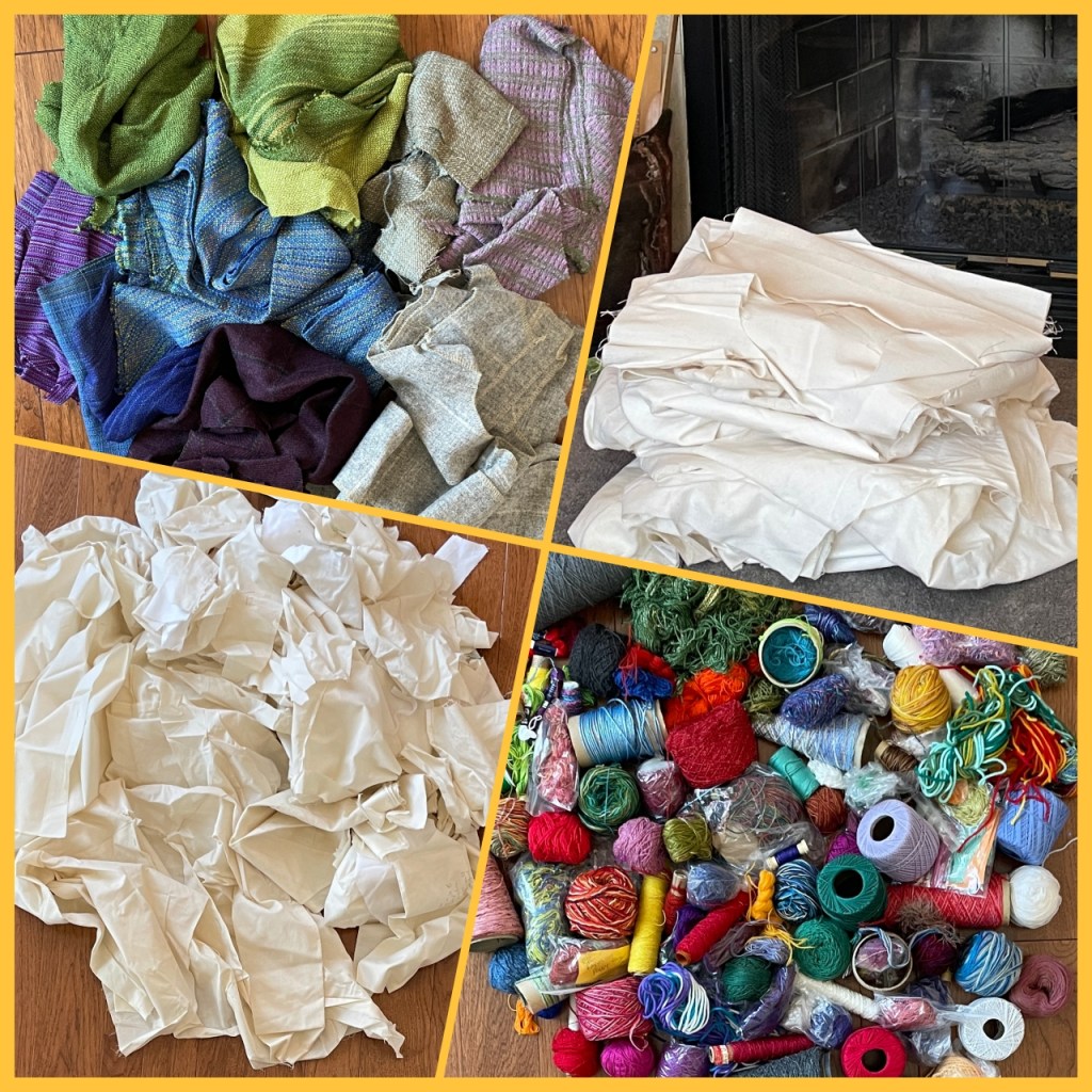 but my pile of scraps has grown too with odds & ends of yarns, oddly cut handwoven fabric from making fitted garments, plus all the muslin test garments and scraps.