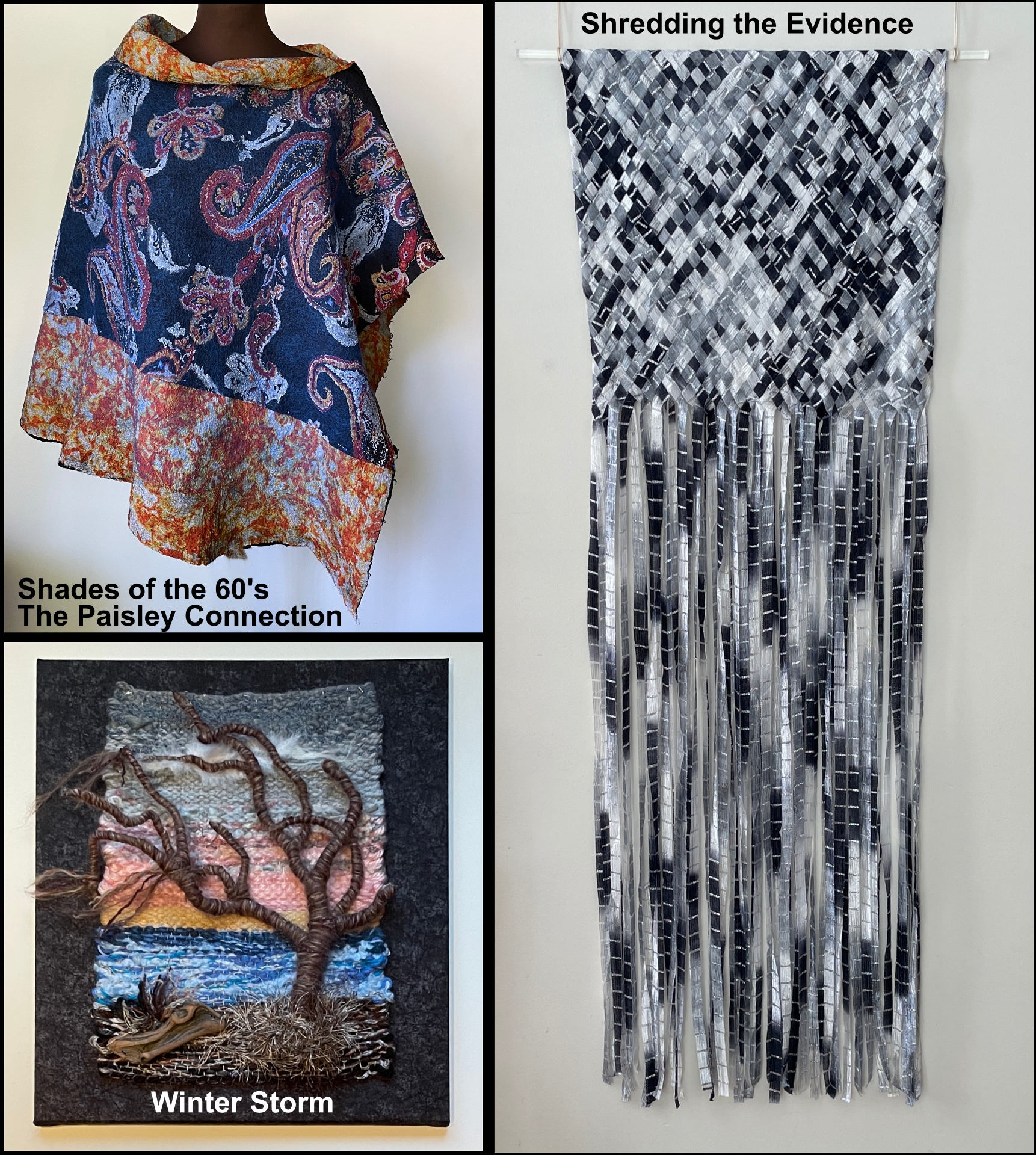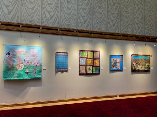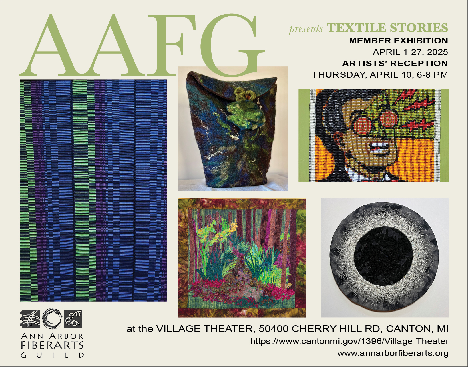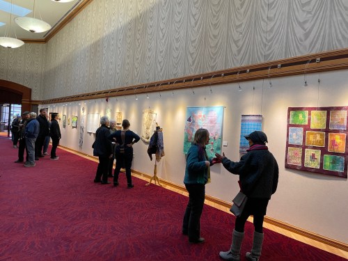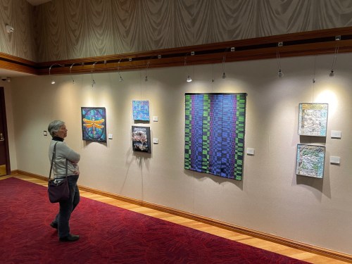 That same week the Ann Arbor Fiberarts Guild Member Exhibition Textile Stories opened at the Village Theater Gallery in Canton, Michigan. Three of my pieces were accepted for that show.