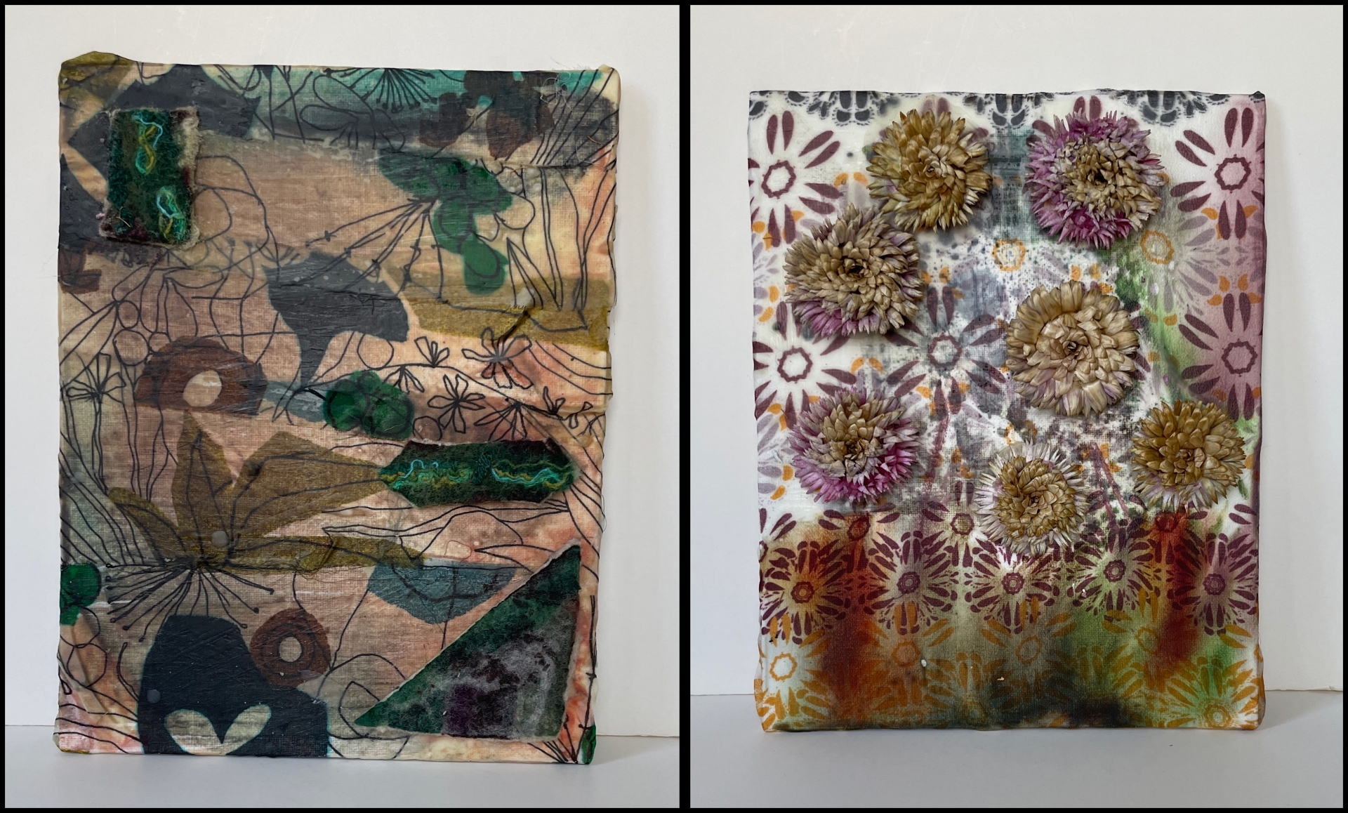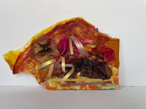 I spent the day experimenting layering felt, fabric, paper and even dried flowers.