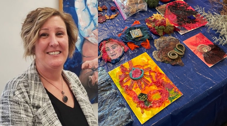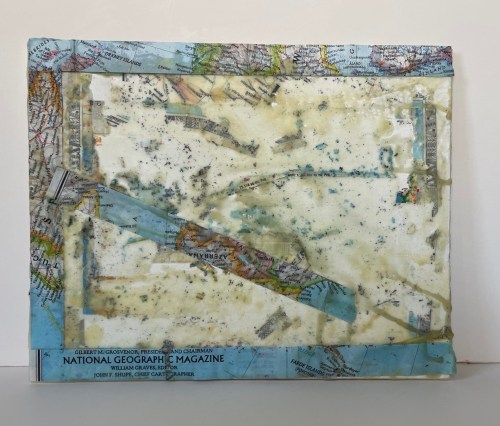 This AAFG workshop was all about adding a new technique to my artistic toolbox by exploring how to use encaustic art materials (heated beeswax, damar resin and pigment) with fiber. By playing with different materials, colors, and textures we created surprising new effects. This is an ancient technique going back to the first century in Greece and Rome.