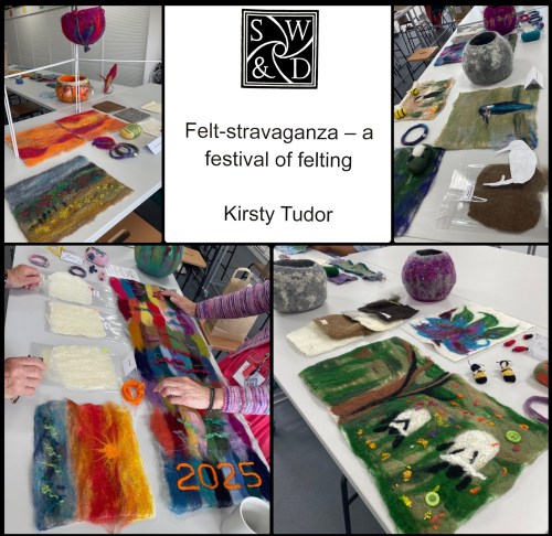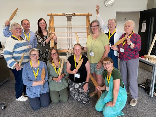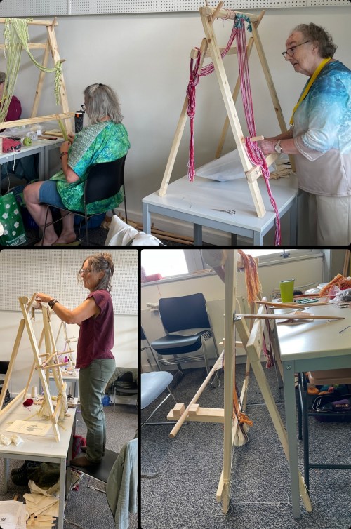 […] ribbon and map weaving **Weaving on a Warp Weight Loom at the AGWSD Summer School **Creating woven and felt pieces for AAFG exhibits & sales**Weaving a rag rug for historic […]