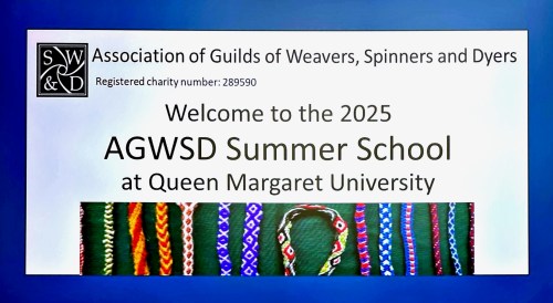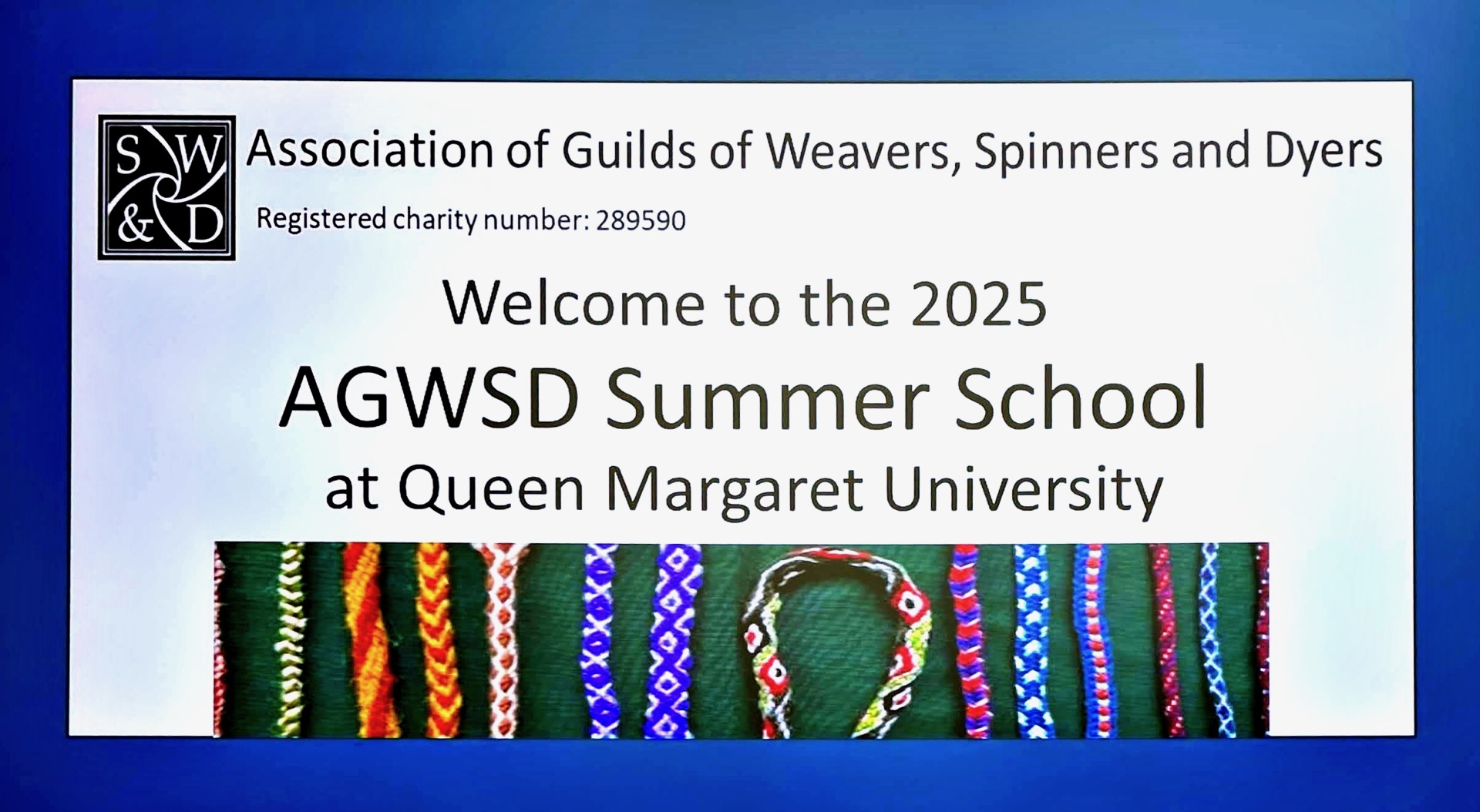 The Association of Guilds of Weavers, Spinner and Dyers Biennial Summer School was held from August 3-10 this year in Scotland at Queen Margaret University just a 10 minute train ride from Edinburgh. 246 students participated in 18 courses in weaving, spinning, dyeing and felting.