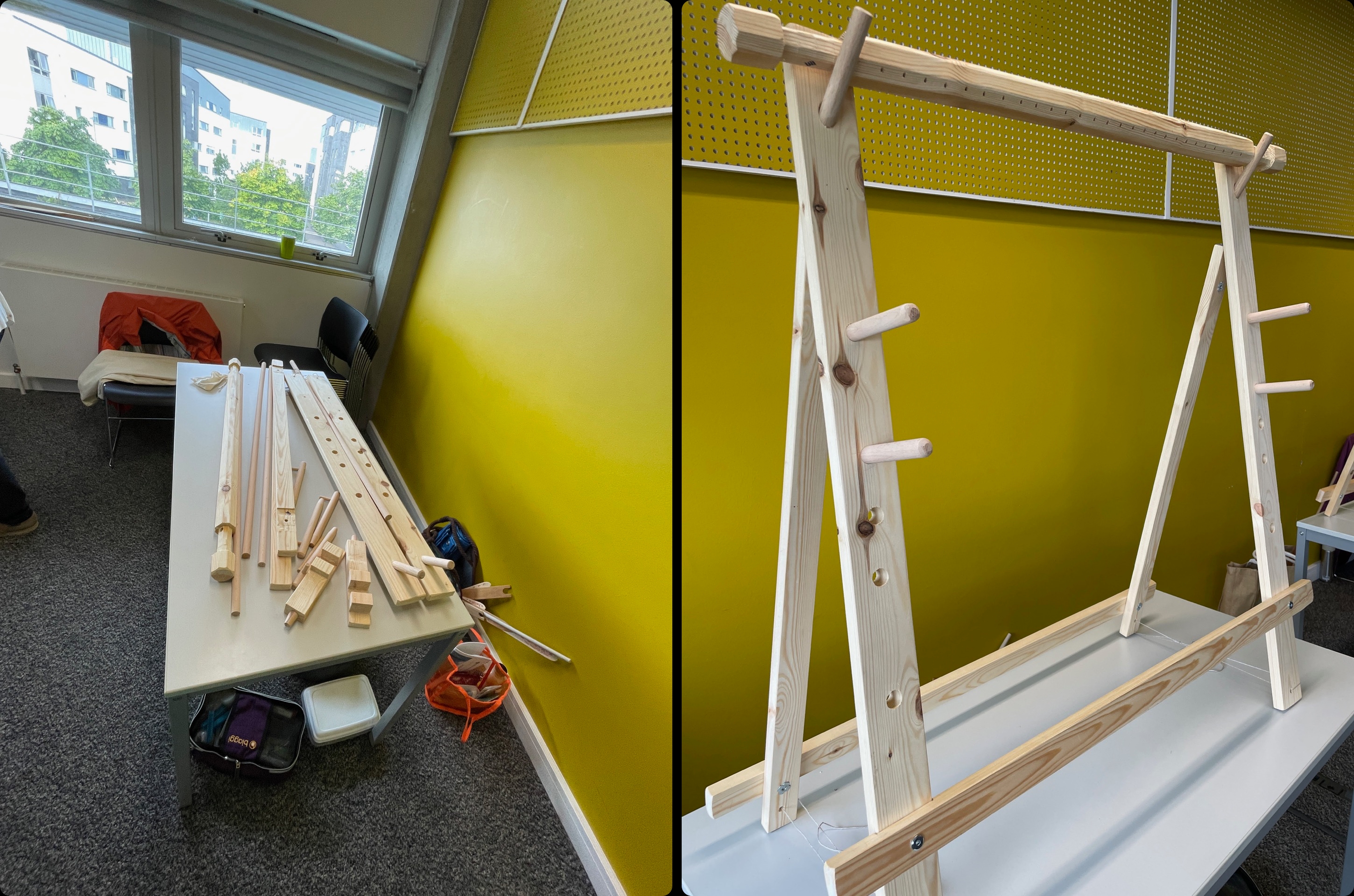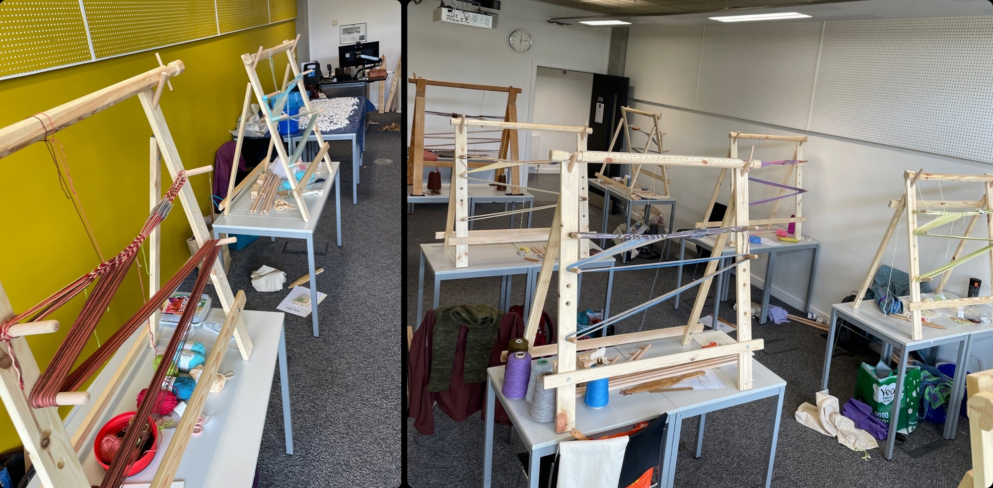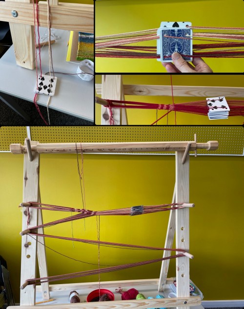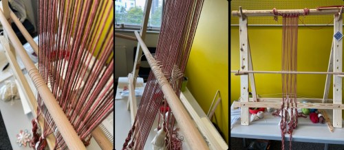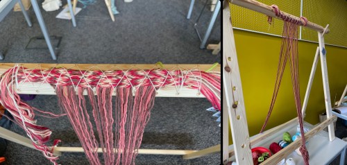 6. Knitting the heddles in the morning and now ready to start weaving!