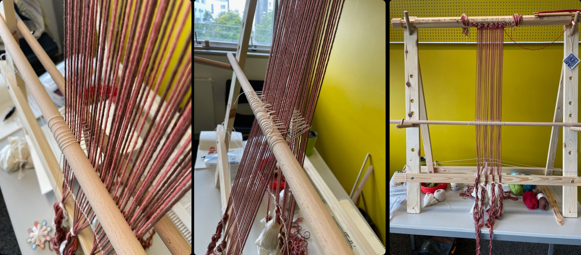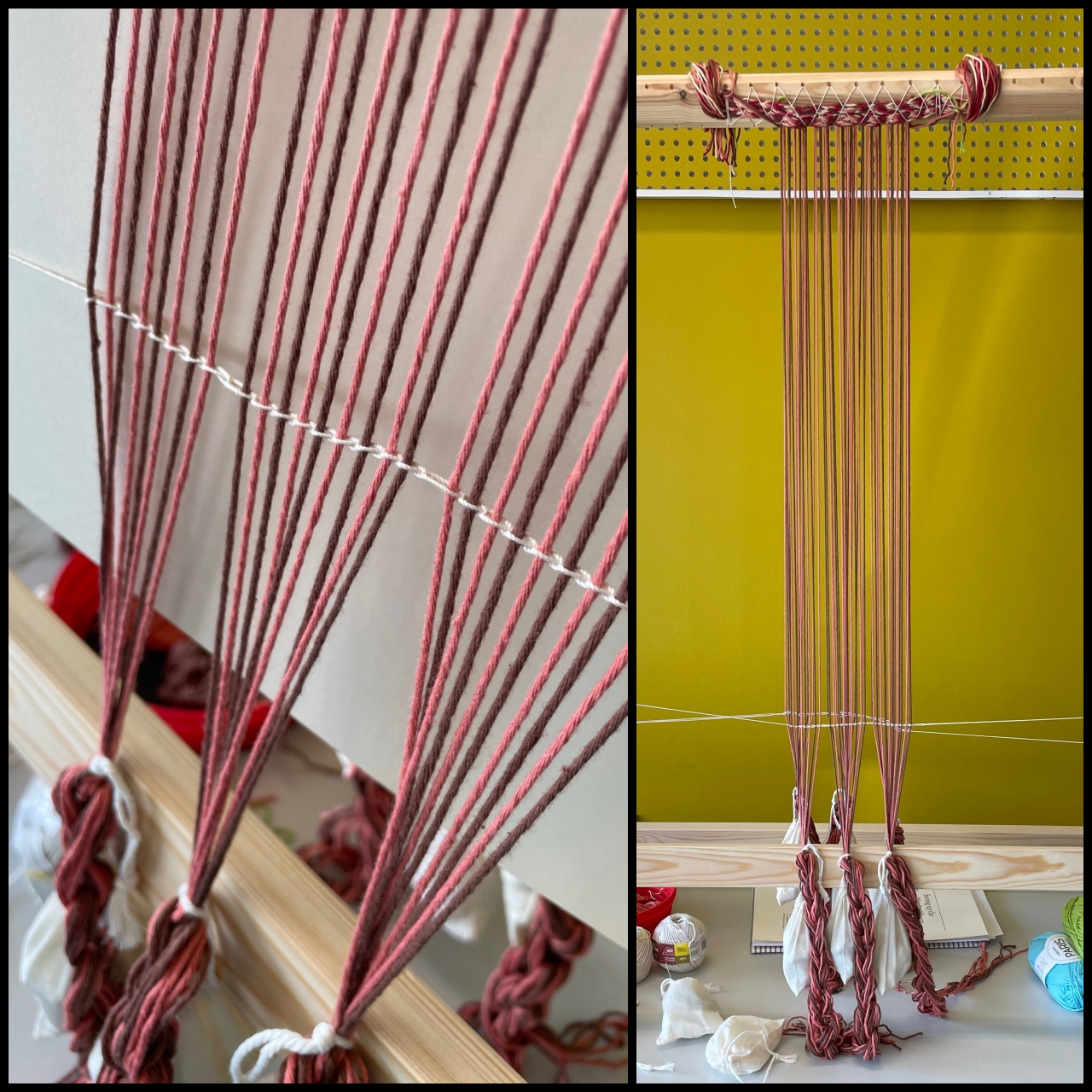 In the afternoon – Back to using cotton yarn to repeat one more time all the steps for warping the loom.