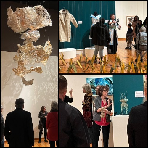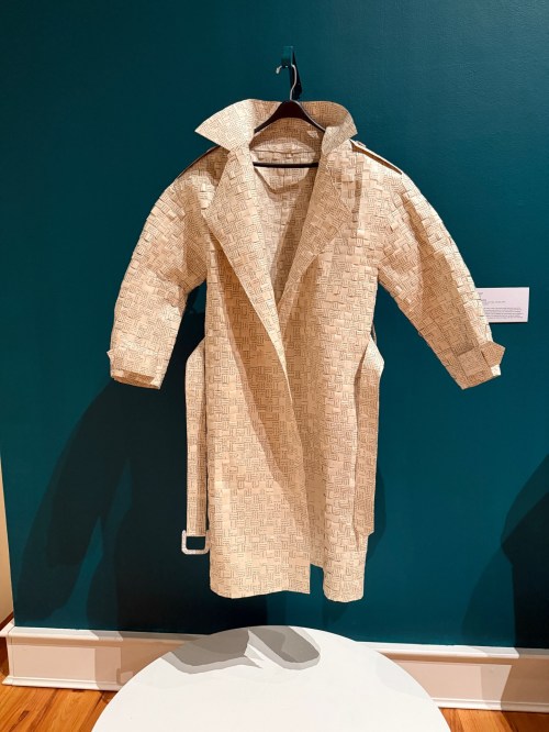 For the tours we each gave a 10 min artist talk about our pieces, our process and answered questions. I also read the description card for the trench coat next to Couture Cartography and highlighted difference between its woven structure vs the map dress being sewn. Excellent turnout of people – lots of interest and questions, many conversations and hearing how the other artists work with paper was fascinating.