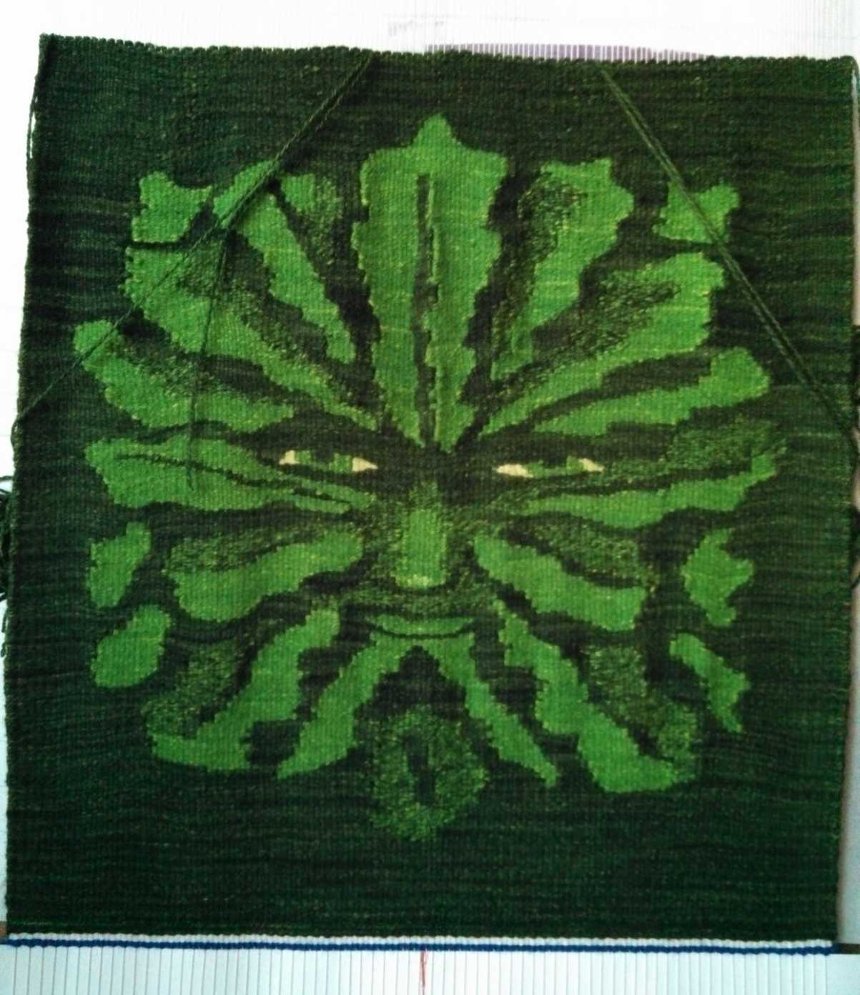 The weaving completed, I cut the Green Man off the loom on January 13, 2014
